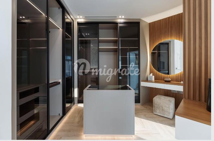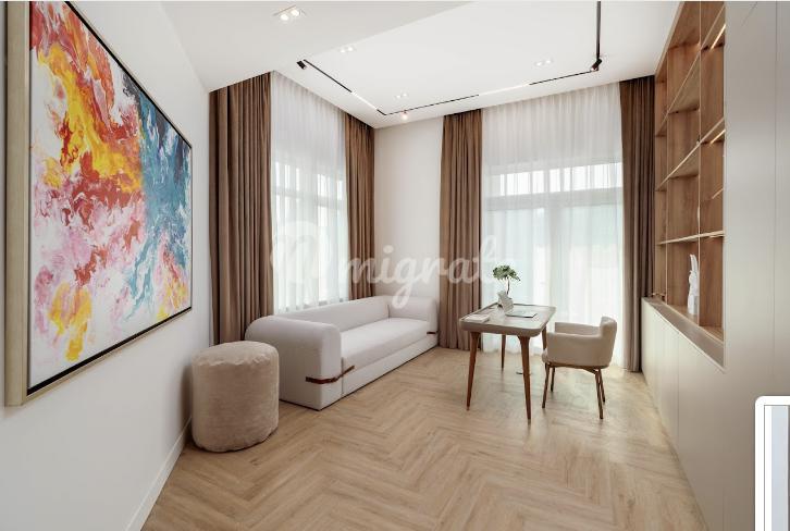 - Полностью меблированный вариант: Возможность приобрести полностью меблированный вариант за дополнительные 300 000 дирхамов, с изысканной мебелью и со вкусом оформленным интерьером от нашего штатного дизайнера, все предметы которого поставляются на местный рынок от элитных брендов в Дубае