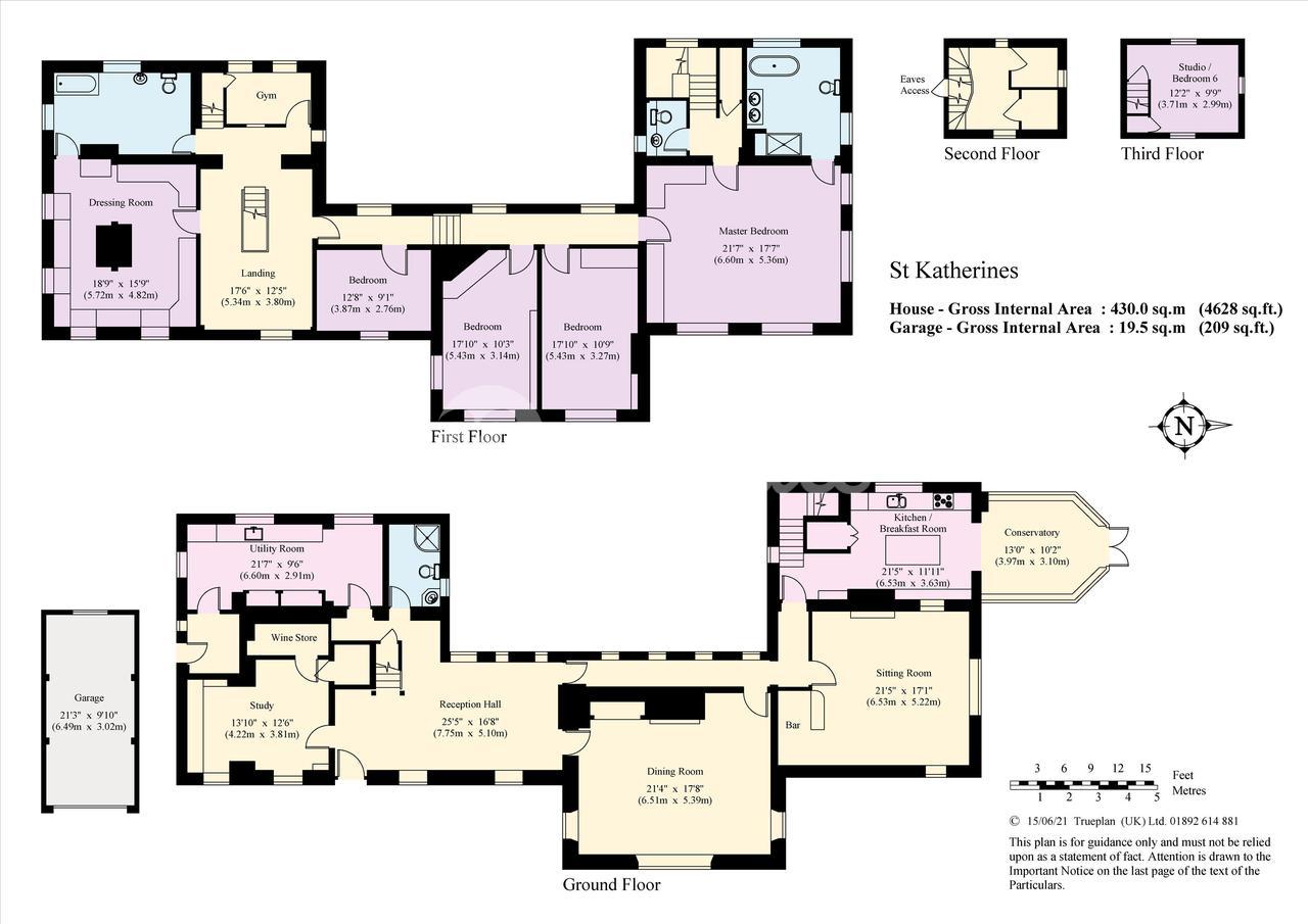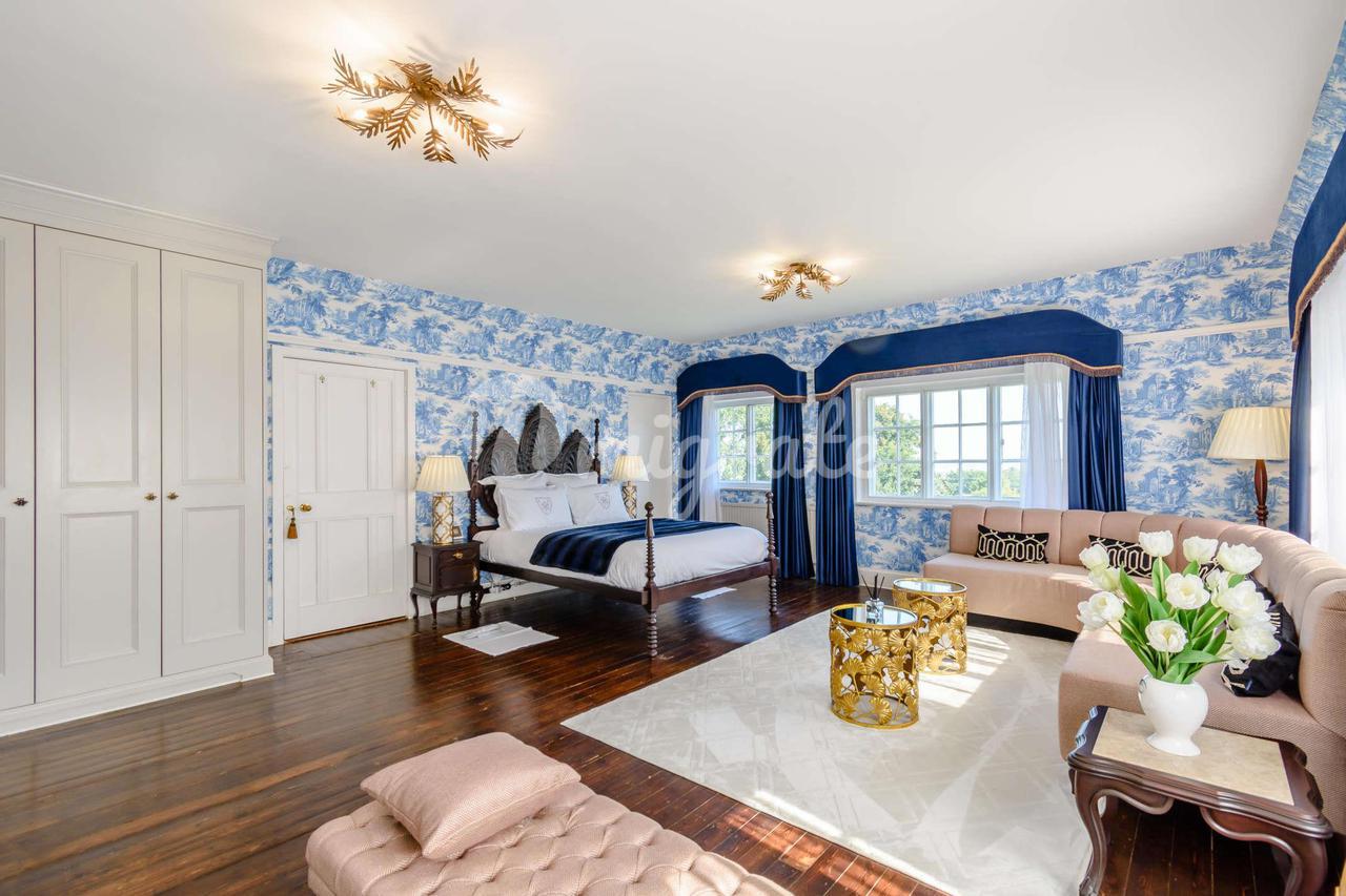 На первом этаже из главной спальни открывается панорамный вид на север и восток, с видом на Темзу. В ней есть встроенные шкафы, а также гостиная/зона отдыха и просторная ванная комната. Существует также доступ к отдельному туалету вместе с лестницей на первый этаж. Вторая спальня с выходом в семейную ванную комнату в настоящее время используется как гардеробная и гардеробная со сделанными на заказ открытыми шкафами, полками и ящиками, а также центральным камином. Есть еще три спальни, две из которых имеют встроенные шкафы, и все обслуживаются просторной семейной ванной комнатой. Есть также еще одна комната, которая в настоящее время используется как тренажерный зал. С первого этажа лестничная площадка ведет к башне, которая состоит из двух этажей, один из которых предназначен для хранения, а верхний этаж в настоящее время используется в качестве медиа-зала. Оба уровня имеют обширный вид на восток и запад.