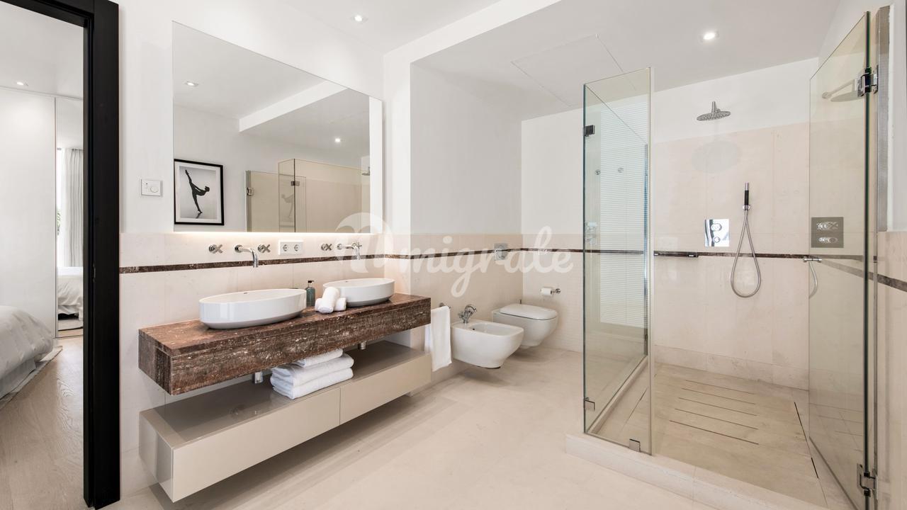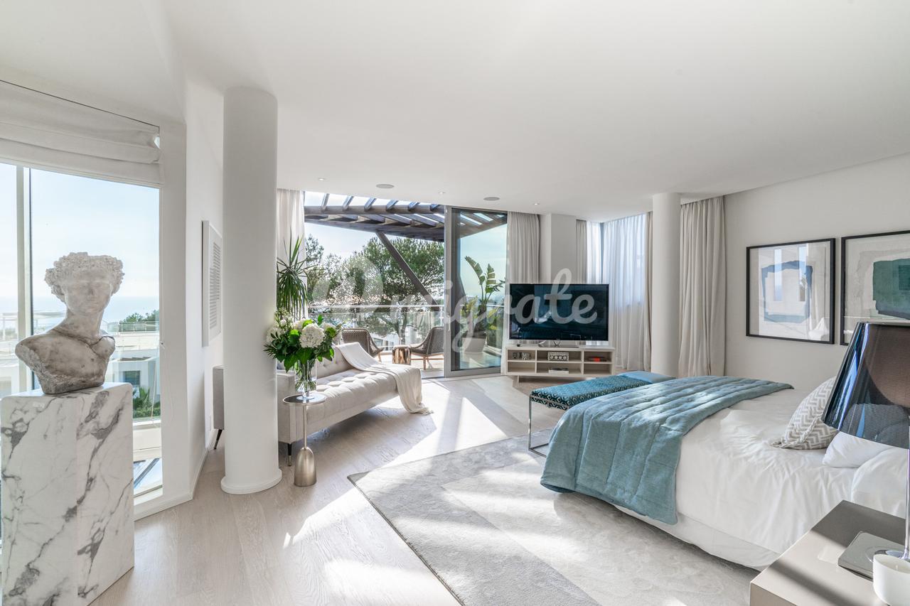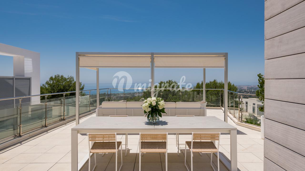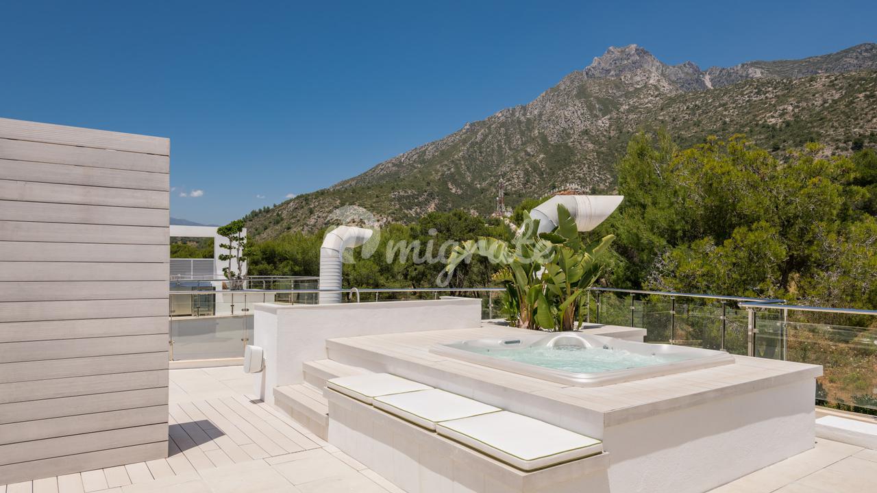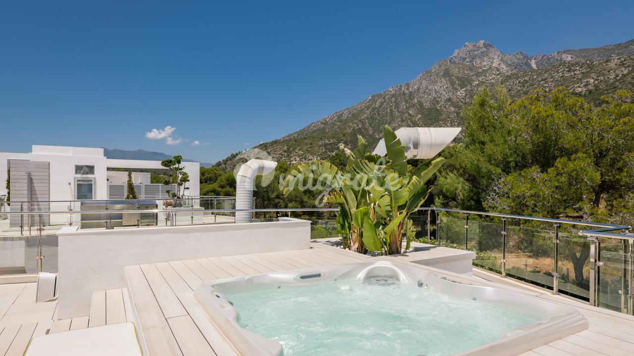 Эта двухквартирная вилла современного дизайна расположена в самом престижном жилом районе Марбельи, Сьерра-Бланка, в комплексе Meisho Hills, построенном в 2012 году. Из окон открывается вид на побережье, Гибралтарскую скалу и горы Африки на горизонте. Пышная и охраняемая природа гарантирует полную конфиденциальность. Он находится всего в нескольких минутах от центра города, Пуэрто-Бануса и полей для гольфа.