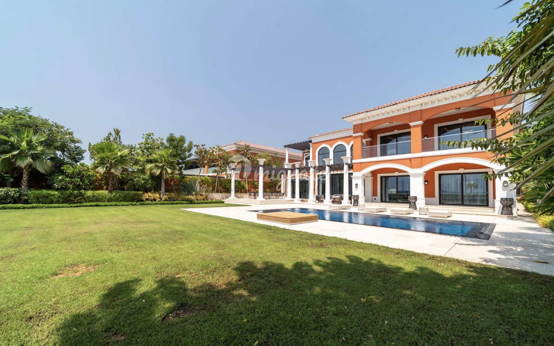 Мы рады представить вам эту Emerald Villa, часть эксклюзивного закрытого комплекса XXII Carat на Пальме Джумейра. Она отличается фасадом в средиземноморском стиле яркого красного цвета, характерного для вилл в этом районе, а также исключительными интерьерами, выполненными по индивидуальному заказу. Центральное место в вилле занимает великолепная гостиная двойной высоты, которая соединяется с официальной гостиной и кухней, которая может быть открытой или закрытой. Кухня выполнена во французском стиле, с изысканными мраморными деталями, центральным каменным островом и элегантными шкафами ручной работы с деревянной отделкой. Она полностью оборудована высококлассной бытовой техникой. Все мраморные полы в основных жилых зонах - итальянские. Каждая спальня также отличается роскошным дизайном с деревянным полом и высокими окнами, из которых открывается невероятный вид на море. Все ванные комнаты выполнены в итальянском стиле с использованием фурнитуры ручной работы, а в главной ванной комнате установлена потрясающая итальянская ванна, изготовленная из хрусталя. Гардеробные также очень вместительны и выполнены на заказ. Снаружи вилла располагает потрясающим ландшафтным садом и частным бассейном с палубой, с которой открывается вид на Персидский залив и горизонт Дубай Марина.