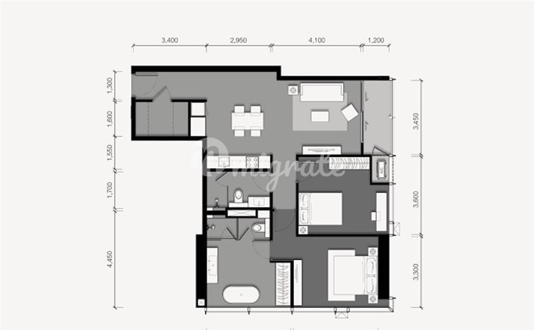 Тип 2B4 2 спальни, 2 ванные комнаты 98,5кв.м. Угловой блок (6 блоков на этаж) Высокий этаж С видом на юго-восток (Саторн - Кинг Пауэр Маханакхон, корп.) Специальная цена!