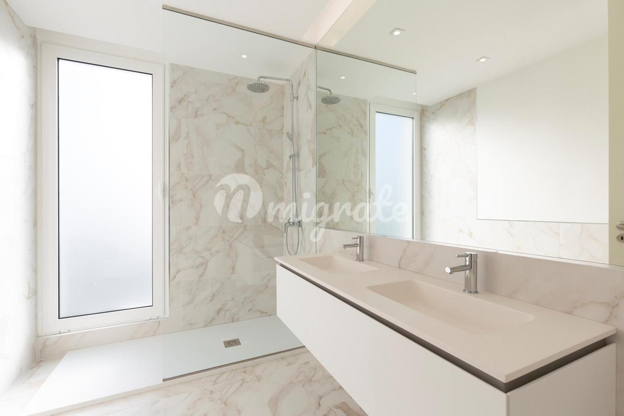 Первый этаж состоит из выходящей на южную сторону светлой гостиной с прямым выходом к бассейну, полностью оборудованной кухни, которая также имеет выход на открытое пространство, и гостевой ванной комнаты. Лестница ведет на верхний уровень. На этом этаже есть три спальни со смежными ванными комнатами и отдельными балконами.