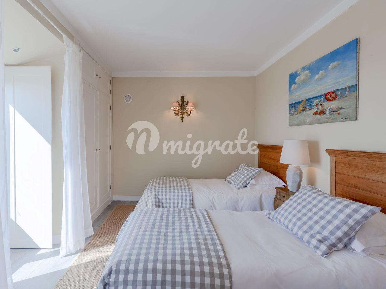 Недвижимость расположена на участке площадью 620 кв. м и предлагает 187 кв. м жилой площади, распределенной на двух этажах. Первый этаж состоит из гостиной с камином, столовой, оборудованной кухни, кладовой и гостевой ванной комнаты. Главная спальня имеет прямой выход на балкон с прекрасным видом на море, а две спальни с общей ванной комнатой находятся на втором этаже.