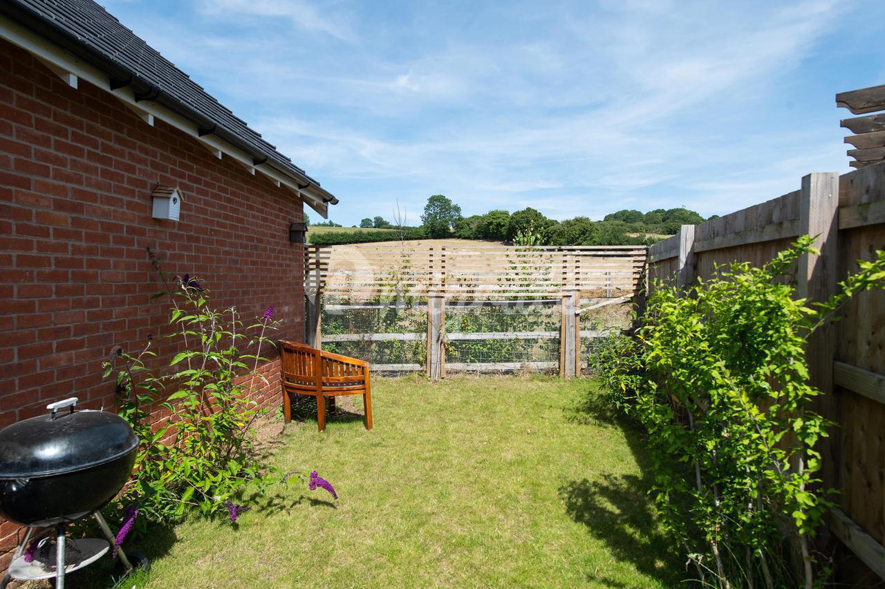 За домом есть огороженный сад с газоном и мощеным патио с бордюрами из кустарника и молодыми фруктовыми деревьями, огражденный забором из плотных досок и столбов с перилами сзади.