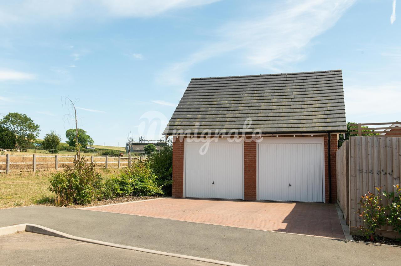 Существует большой отдельно стоящий гараж на две машины с двумя верхними дверями, местом для мастерской и потенциальным местом для хранения наверху. Существует также парковочное место для двух автомобилей на мощеной подъездной дорожке.
