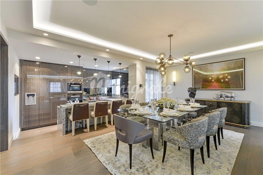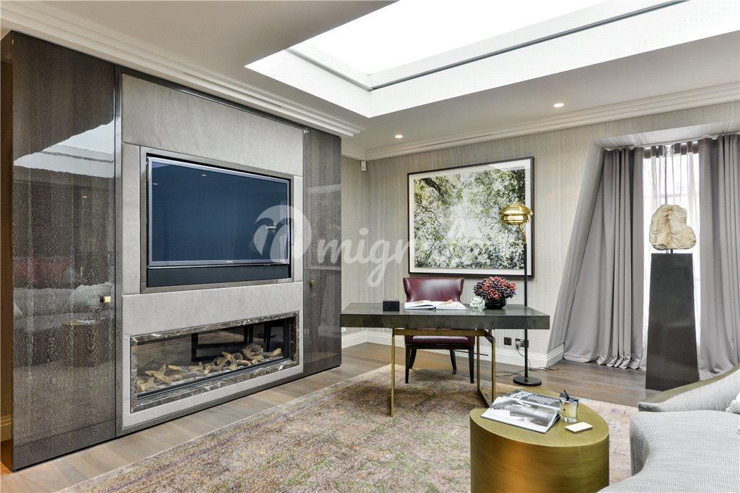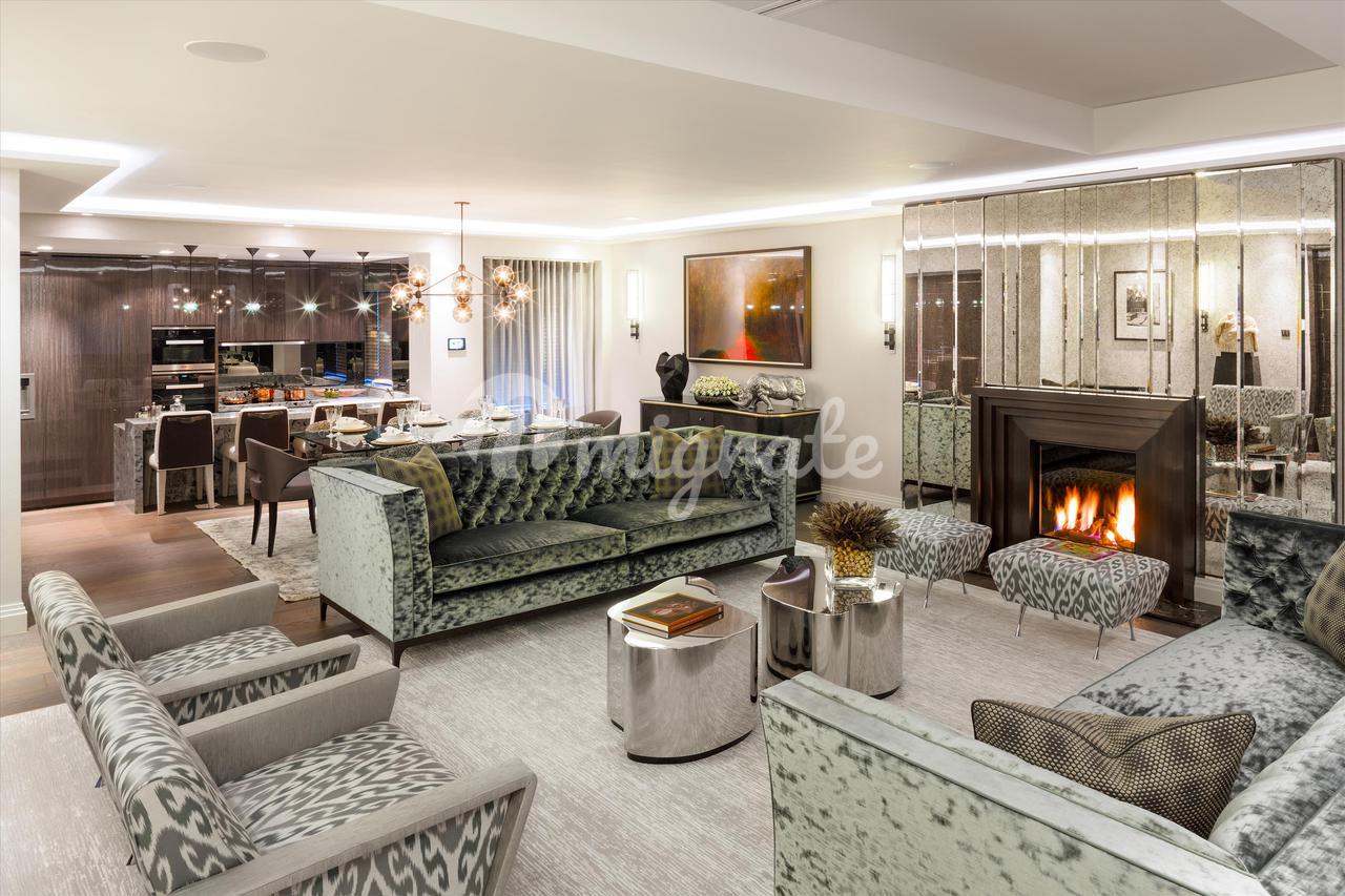 Недвижимость включает в себя большую двойную приемную [11,6 м х 6,9 м], современную медиа-комнату и три больших спальни, 318 квадратных метров пространства превосходно представлены только на одном уровне. Также имеется сделанная на заказ кухня с большой барной стойкой. Главная спальня представляет собой исключительно просторный люкс с большой ванной комнатой и гардеробной. Еще два люкса расположены в задней части отеля с открытым видом на запад, на Найтсбридж и Харродс. Цена включает в себя мебель и содержимое, за исключением предметов искусства и скульптуры (доступны по отдельной договоренности). ЭПК: С