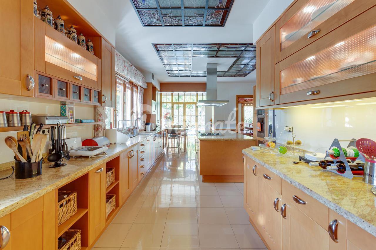 Двухэтажная отдельная вилла площадью 700 м² расположена на участке площадью 2500 м² с садом и бассейном. У него впечатляющий фасад и ландшафт, это здание, которое нуждается лишь в незначительных изменениях, чтобы сделать его более практичным. Доступ к собственности осуществляется через просторную прихожую с потолками двойной высоты, из которых вы можете увидеть верхний этаж. И гостиная, и столовая представляют собой независимые пространства, но они связаны с видом на сад, где выделяются обшитые панелями стены и плинтусы, а также украшенные потолки. На этом же этаже вы найдете большую кухню и стеклянную оранжерею с островом и зоной отдыха. Гостиная и профессиональный кабинет завершают планировку. Верхний этаж отведен под спальни: три спальни с собственными ванными комнатами и три дополнительные спальни с общей ванной комнатой. Чрезвычайно роскошная главная спальня имеет собственную гардеробную и выход на каменный балкон. В подвале есть гараж на три или четыре машины, винный погреб, кладовая и большая игровая комната. Пространство также было использовано для включения двух спален и ванной комнаты.