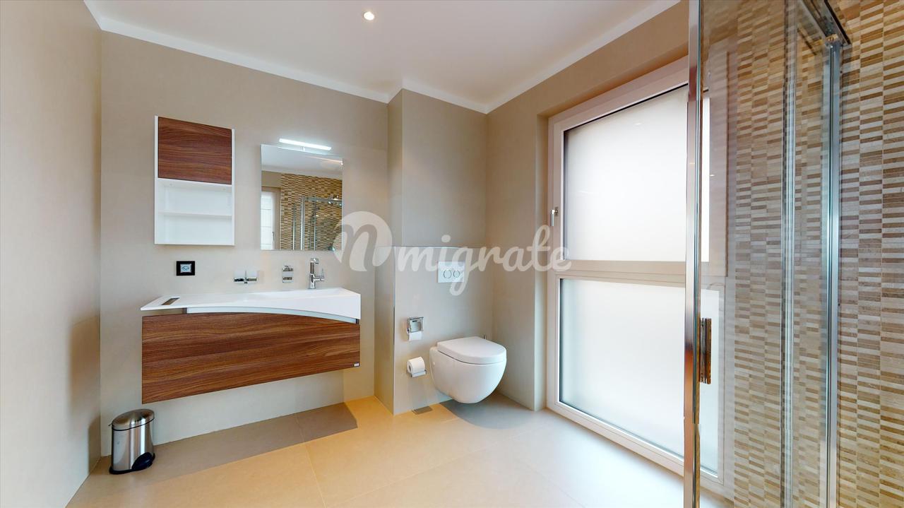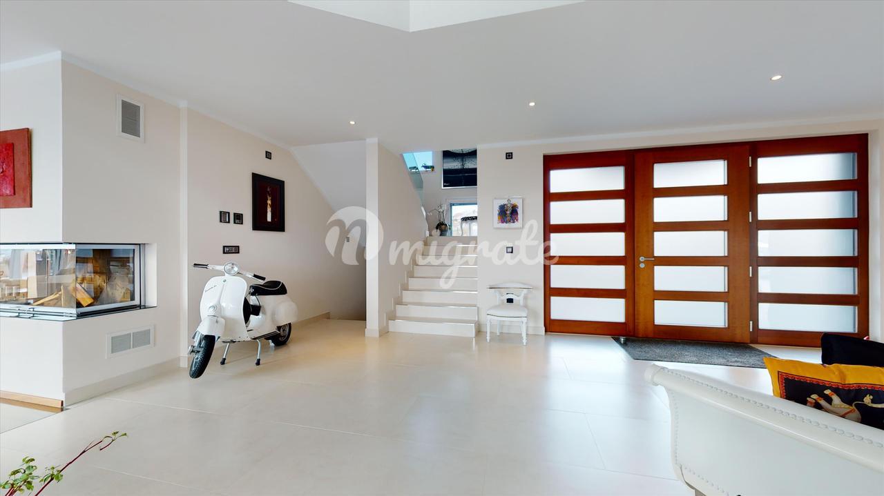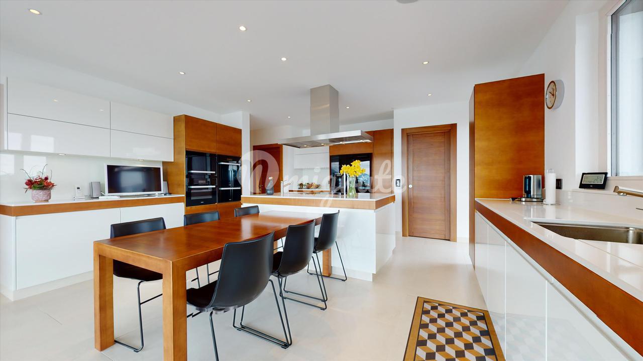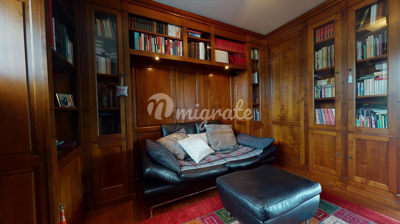 Недвижимость предлагает около 500 кв м жилой площади и расположена на участке площадью 0,4 га. Распределенный на трех этажах, дом включает в себя на первом этаже просторную прихожую, светлую гостиную, столовую, большую полностью оборудованную кухню с кладовой, библиотеку, гостевую спальню с ванной комнатой и прачечную. На цокольном этаже есть охраняемый гараж на четыре-шесть автомобилей, мастерская, техническое помещение, дополнительная комната с ванной и подвал с кондиционером.