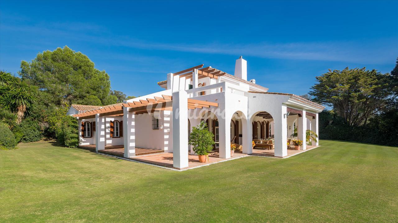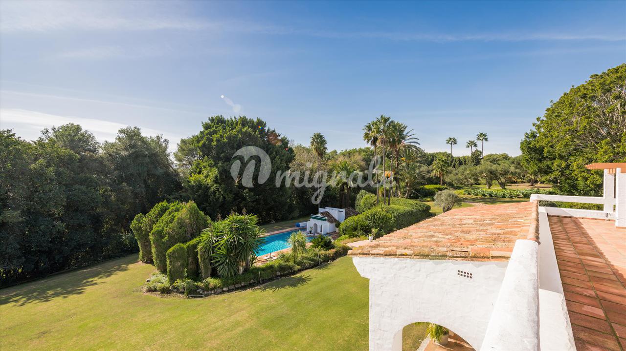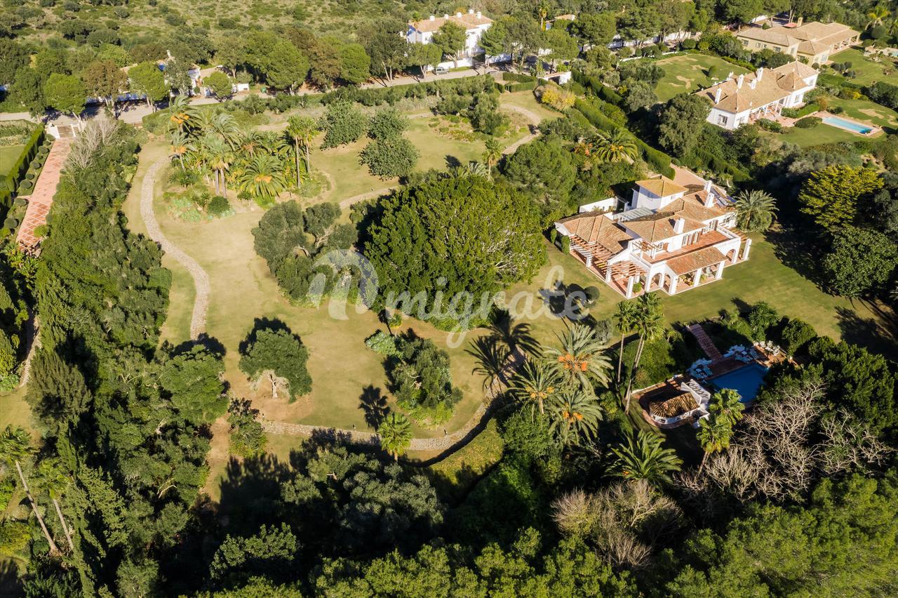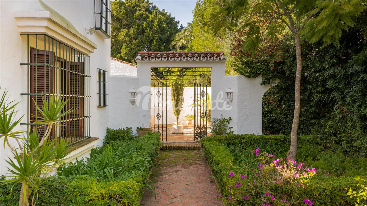 Этот уникальный отель, расположенный на более чем 16 000 квадратных метров парковых садов, сочетает в себе безупречный ландшафт, очаровательную традиционную андалузско-средиземноморскую архитектуру и очень престижное местоположение. Доступ к поместью осуществляется через частные ворота и подъездную дорогу, ведущую к мощеному патио с фонтаном. Расположенный вокруг центрального внутреннего двора со стеклянным покрытием, что является ценным элементом андалузской архитектуры, обеспечивающим много естественного света и свежего воздуха, дом имеет просторную гостиную с двусторонним камином, которая выходит на большую веранду и в сад. Слева формальная столовая также соединяется с кухней с зоной для завтрака, прачечной и небольшим патио. Правое крыло включает в себя гостевую гардеробную, гостевую спальню с ванной комнатой и еще две спальни с общей ванной комнатой. Кроме того, имеется спальня для персонала и ванная комната с отдельным входом. Гараж на 2 машины и возможность парковки нескольких машин во дворе и подъезде.