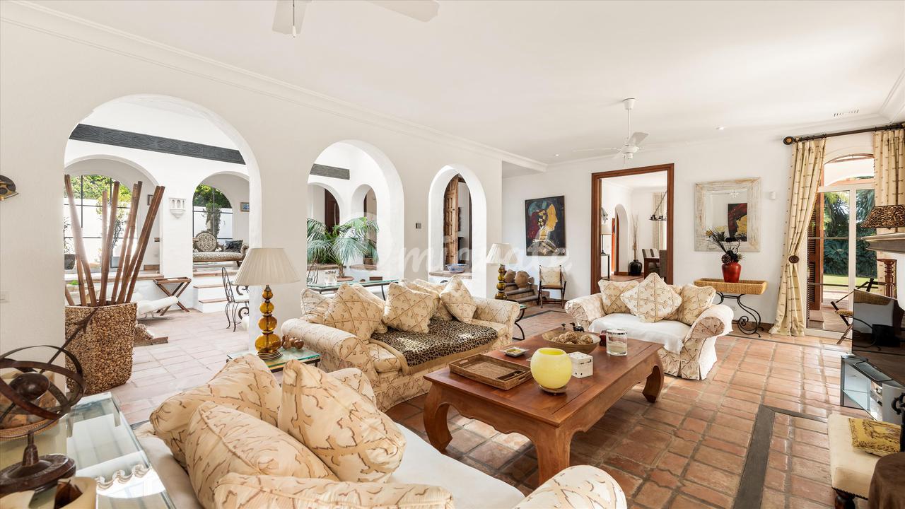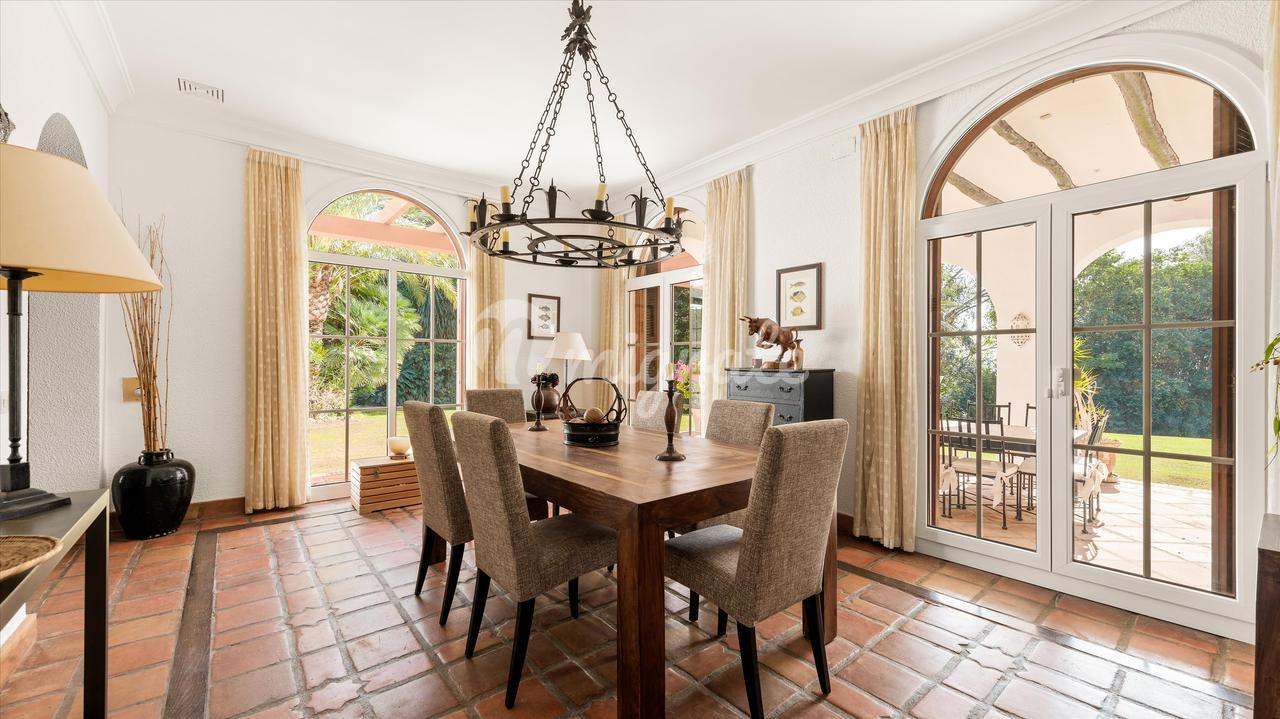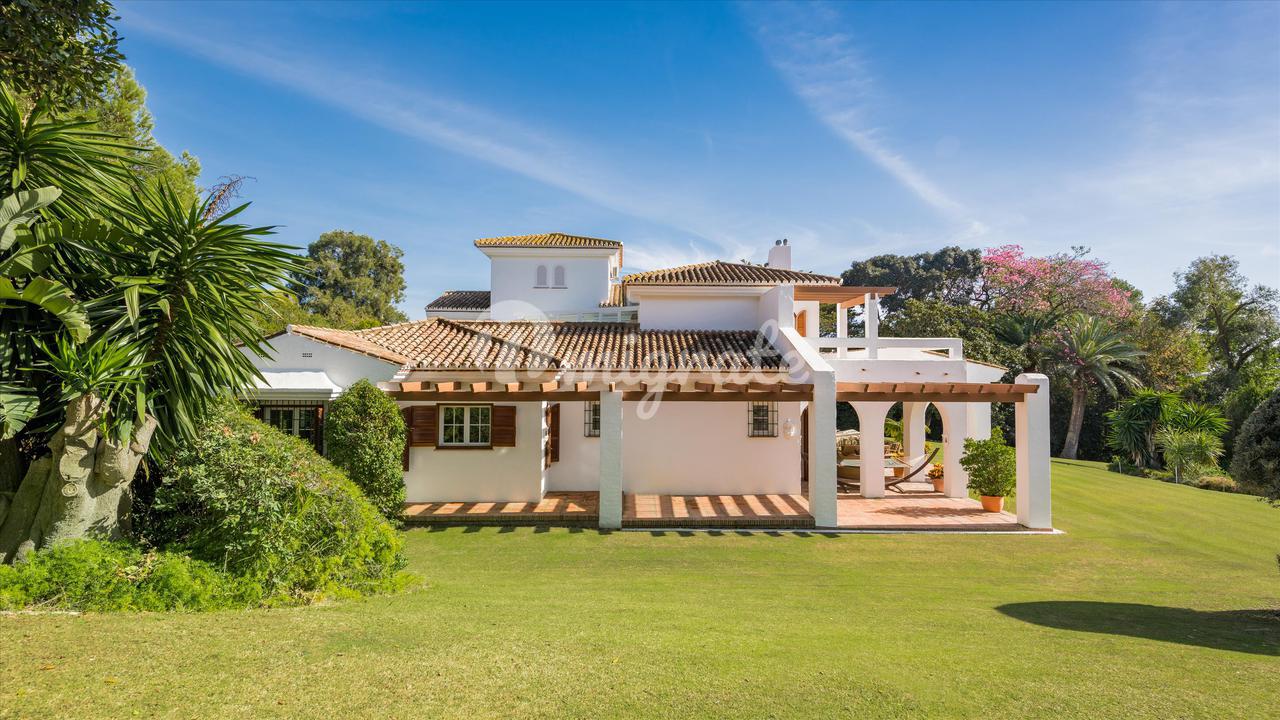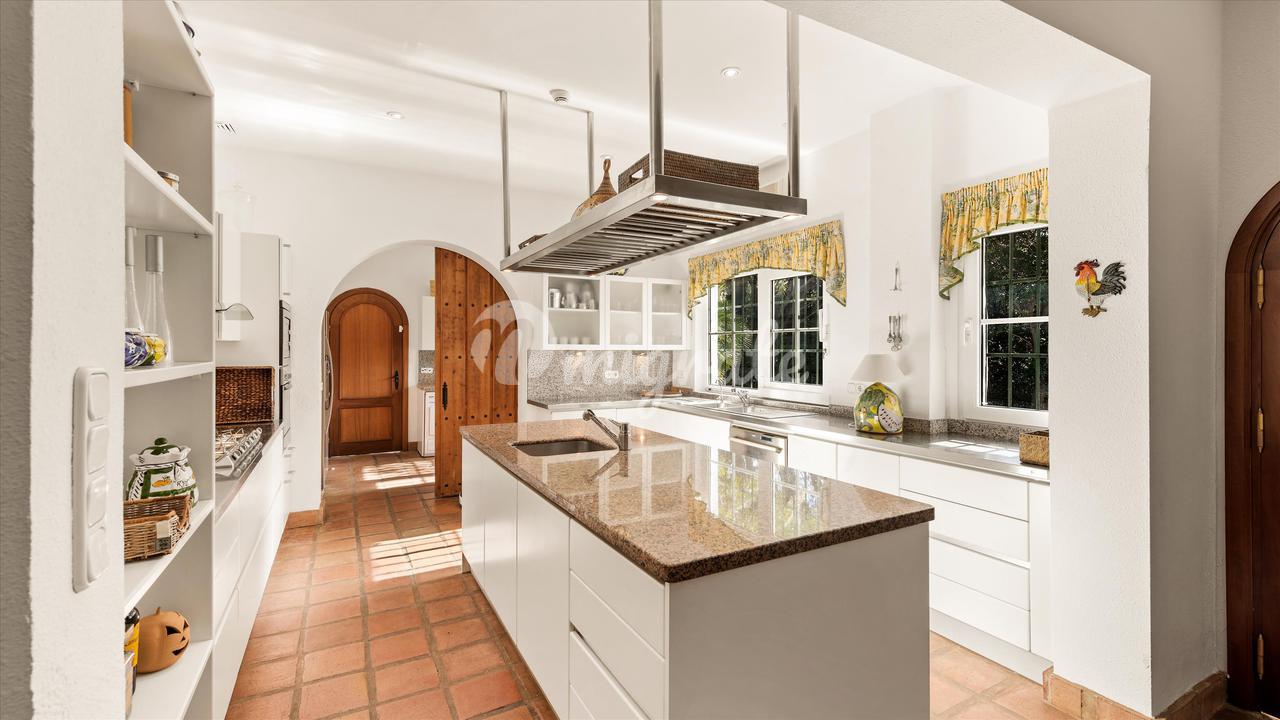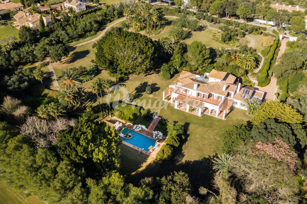Этот уникальный отель, расположенный на более чем 16 000 квадратных метров парковых садов, сочетает в себе безупречный ландшафт, очаровательную традиционную андалузско-средиземноморскую архитектуру и очень престижное местоположение. Доступ к поместью осуществляется через частные ворота и подъездную дорогу, ведущую к мощеному патио с фонтаном. Расположенный вокруг центрального внутреннего двора со стеклянным покрытием, что является ценным элементом андалузской архитектуры, обеспечивающим много естественного света и свежего воздуха, дом имеет просторную гостиную с двусторонним камином, которая выходит на большую веранду и в сад. Слева формальная столовая также соединяется с кухней с зоной для завтрака, прачечной и небольшим патио. Правое крыло включает в себя гостевую гардеробную, гостевую спальню с ванной комнатой и еще две спальни с общей ванной комнатой. Кроме того, имеется спальня для персонала и ванная комната с отдельным входом. Гараж на 2 машины и возможность парковки нескольких машин во дворе и подъезде.