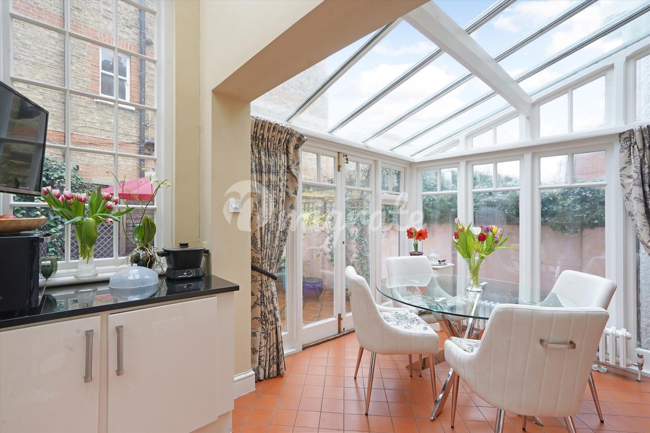 Привлекательная старинная архитектура дома сразу же подчеркивает сказочные пропорции и объемы, характерные для дома. Пространство имеет превосходный поток и удачную планировку, с большим уютным коридором с витражными окнами, одной из многих старинных особенностей по всей собственности, наполняющих дом светом. Передняя приемная на первом этаже имеет просторные пропорции с двойными эркерными окнами и еще одной столовой, которая выходит в светлый зимний сад. Высота потолков очень впечатляет. Просторная кухня открытой планировки / зал для завтраков идеально подходит для повседневной жизни. Кухня и зимний сад обеспечивают доступ к уединенному внутреннему дворику с низкими эксплуатационными расходами, который отлично подходит для развлечений. На этом этаже также есть гардеробная.
