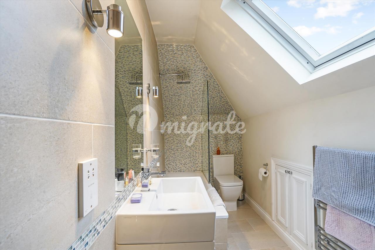 Первый этаж включает в себя главную спальню в передней части дома с красивыми эркерными окнами, пропускающими много естественного света, встроенным хранилищем и просторной ванной комнатой. В доме есть две просторные спальни, из обеих которых открывается вид на сад.