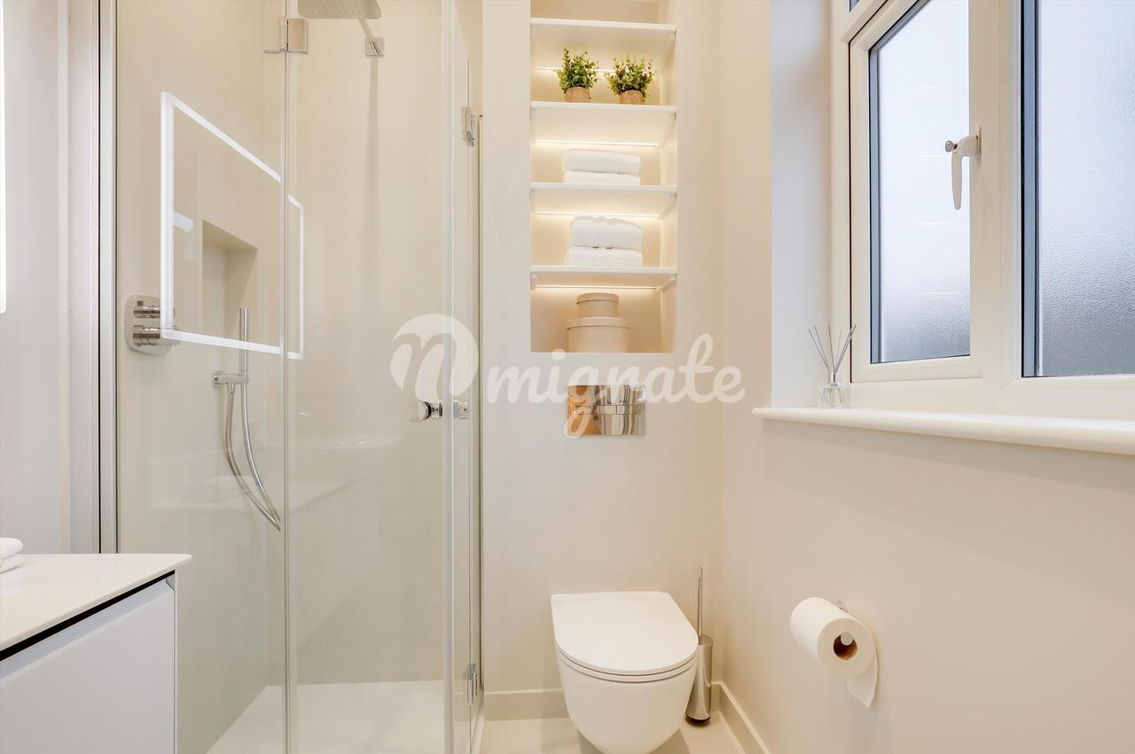 На первом этаже дом состоит из светлого гостеприимного входа с гардеробной, а также гостиной и кухни/столовой в задней части. Кухня сделана на заказ со столешницей из композитного камня и полностью оборудована бытовой техникой Neff и Fisher & Paykel. Существует также большое отдельное подсобное помещение, в котором имеется много места для хранения и сантехника для стиральной машины. Из кухни/столовой есть двустворчатые двери, ведущие в благоустроенный частный задний сад с патио и лужайкой. На втором этаже расположены две просторные спальни, каждая из которых имеет ванную комнату и отличный шкаф для хранения вещей.
