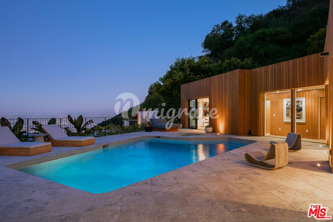 Роскошная вилла с панорамными видами на город расположена на бульваре Сансет в Лос-Анджелесе. Вилла включает 4 спальни, 5 ванных комнат, открытую планировку. В основной спальне расположена спа-зона, гардеробная и терраса с видами на бассейн и город. Все другие спальни также включают просторные гардеробные и ванные комнаты.