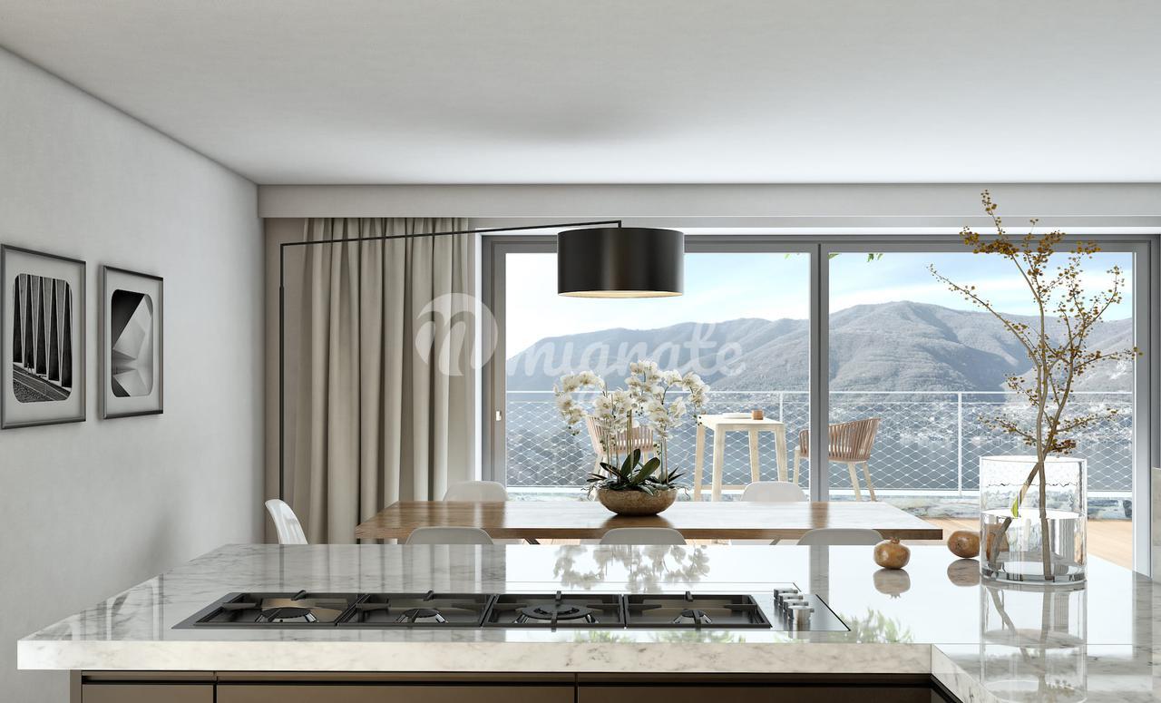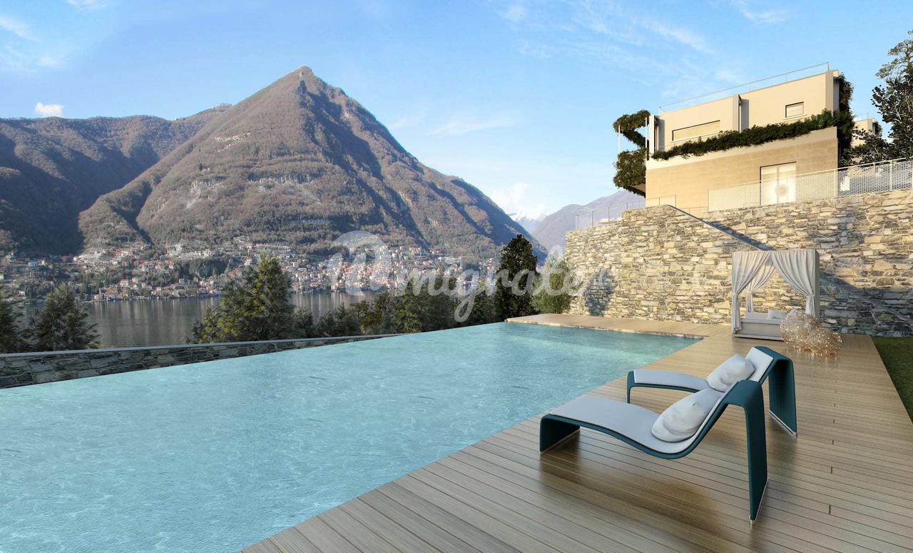 Просторная светлая вилла общей площадью около 400 кв.м. прекрасно спланирована, имеет лифт и несколько террас, с которых открывается великолепный вид на озеро и горы. Планировка виллы включает в себя: пять спален, пять ванных комнат, просторную гостиную, несколько гардеробных. На -1 этаже расположен гараж на четыре автомобиля. Вилла имеет частный бассейн и сад.