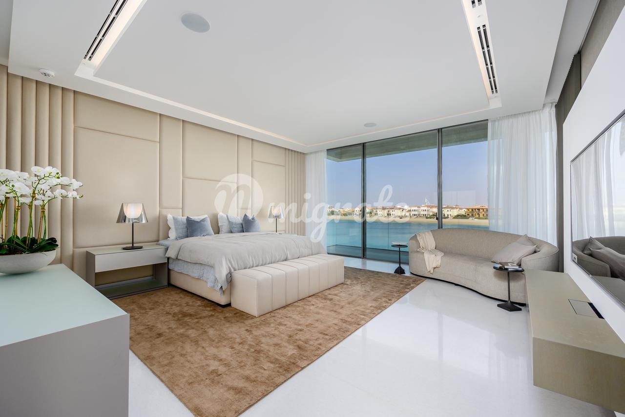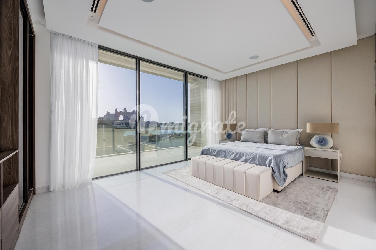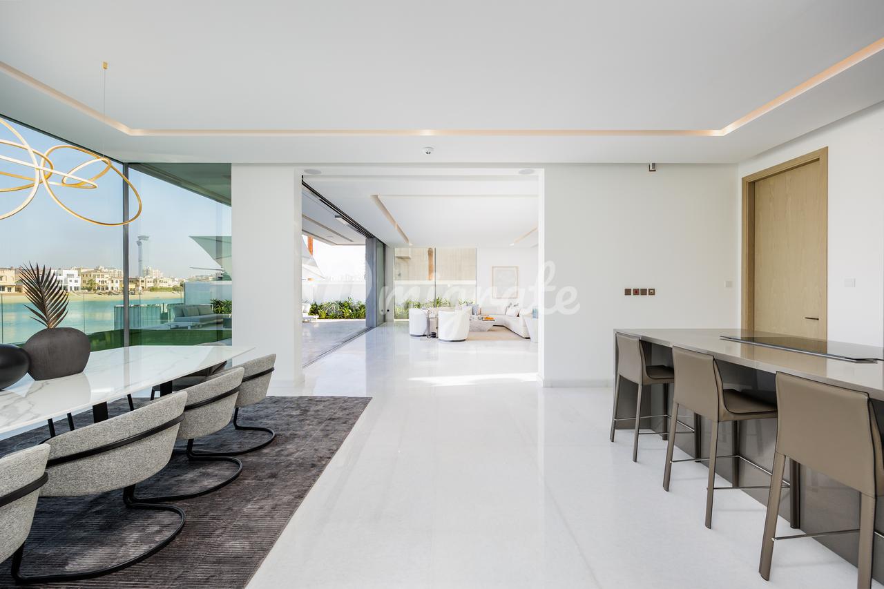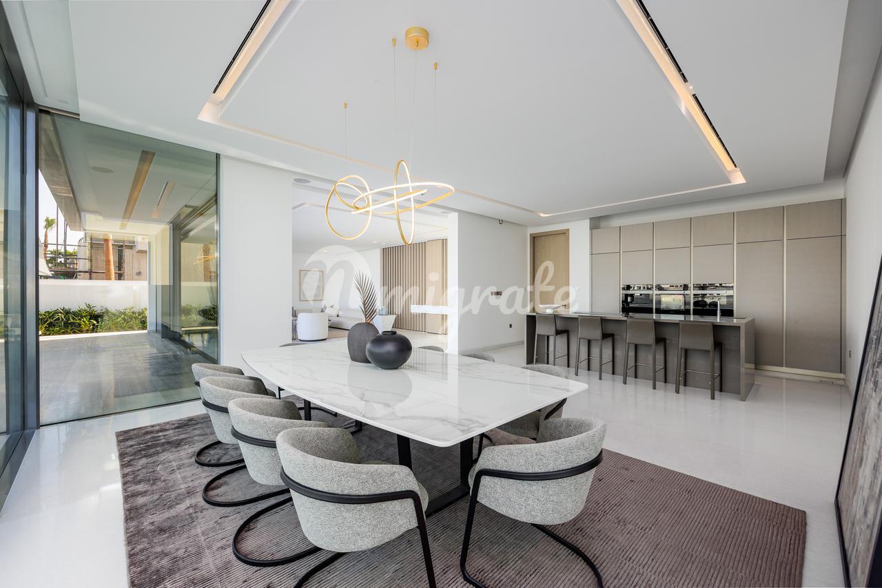 Современная вилла, расположенная в восточной части острова Палм-Джумейра, находится на побережье и имеет прямой выход к пляжу.