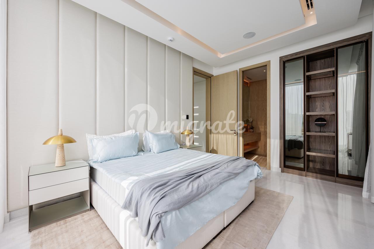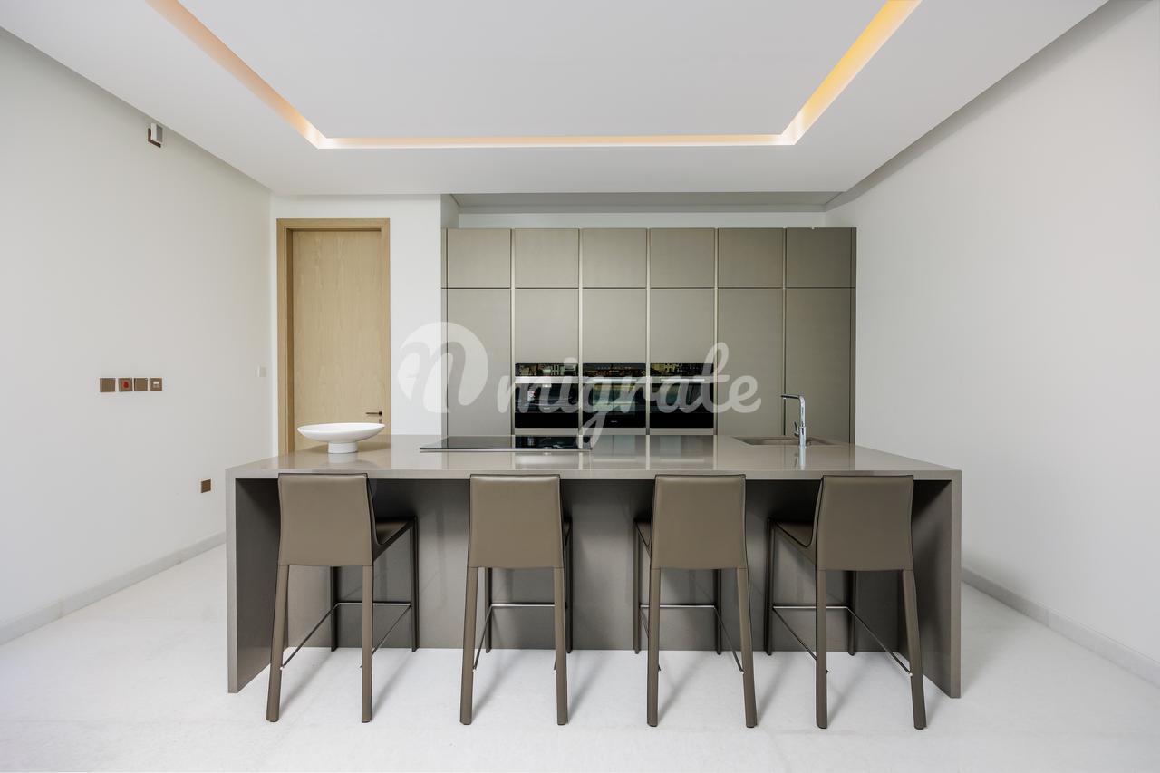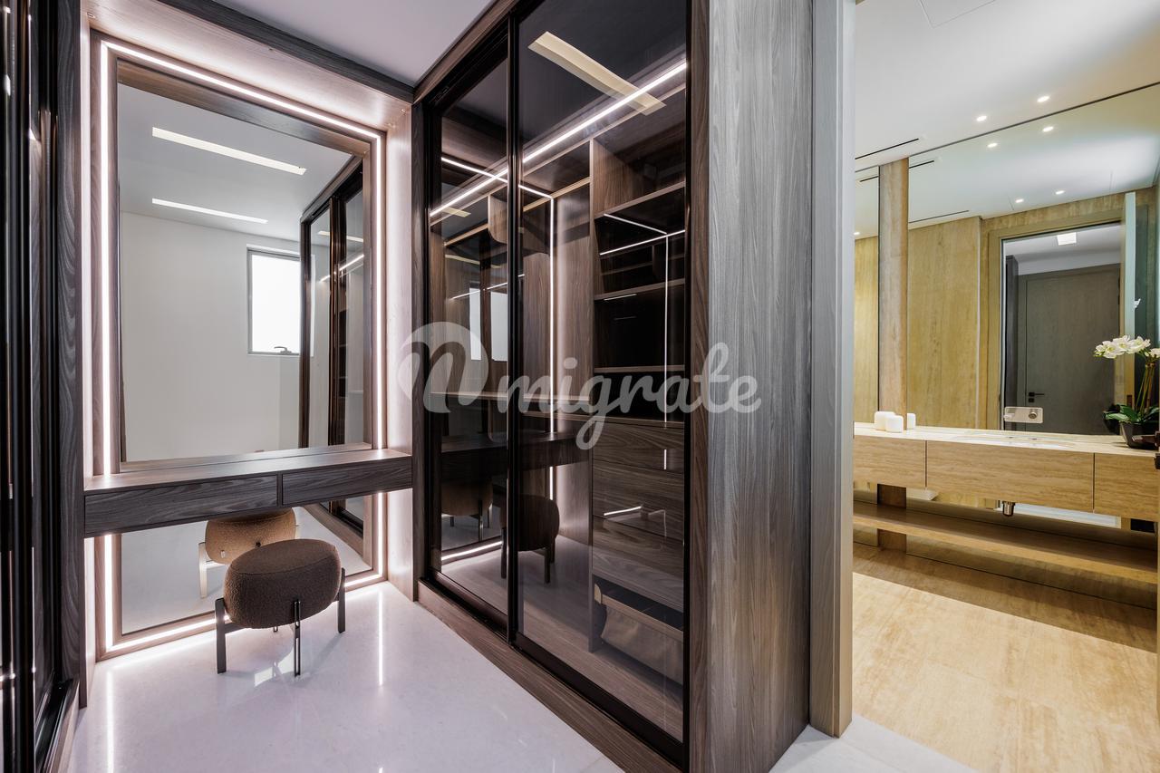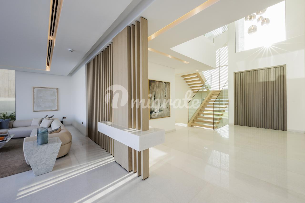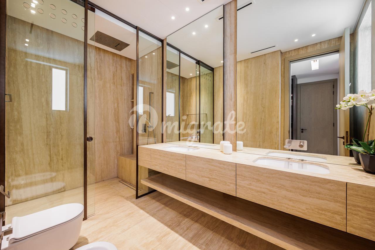 Современная вилла, расположенная в восточной части острова Палм-Джумейра, находится на побережье и имеет прямой выход к пляжу.
