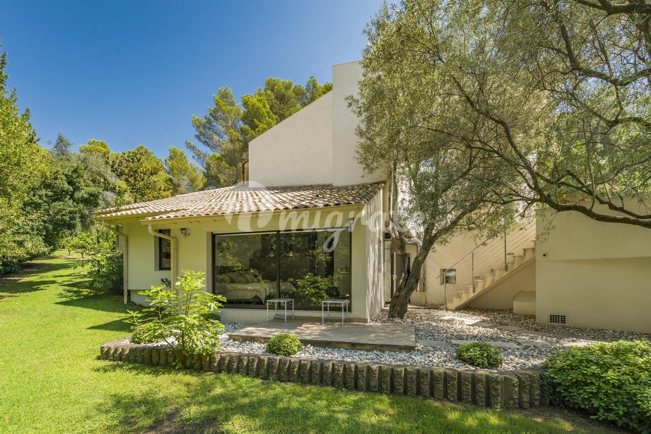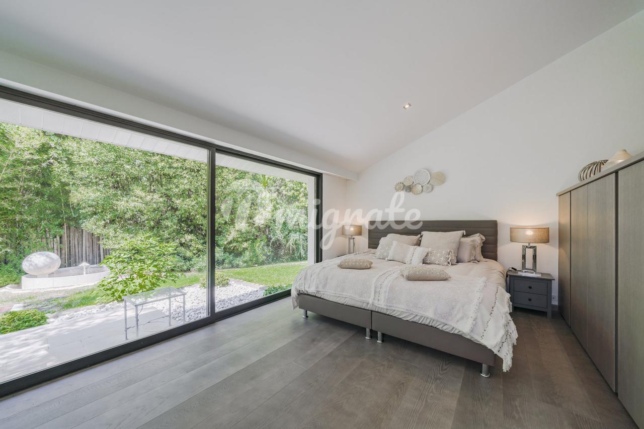 Современная вилла расположена в престижном жилом районе в Мужен. На участке площадью 8 500 кв. м находится подогреваемый бассейн, домик у бассейна и летняя кухня. Основная вилла включает просторную гостиную с камином, винный погреб, кухню, столовую, прачечную, 7 спален, 2 спальни для персонала, 7 ванных комнат, сауну и фитнес-зал.