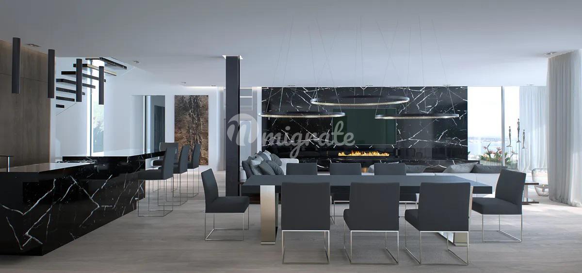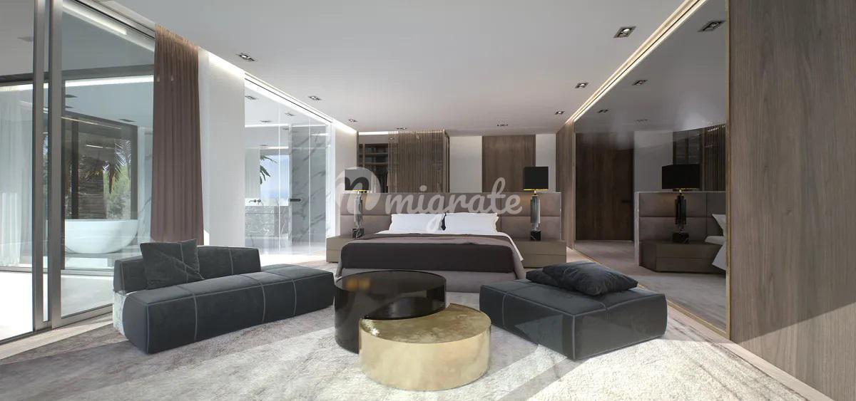 Охраняемый поселок. Эта современная вилла площадью 600 м² включает в себя прихожую, просторную гостиную с выходом на террасы и к саду, столовую, полностью оборудованную кухню, 6 спален с собственными гардеробными и ванными комнатами. Здесь также есть крытый бассейн, хаммам, тренажерный зал, кинозал и винный погреб. Территория виллы - роскошные ландшафтные сады около 3250 м², бассейн с подогревом, паркинг.