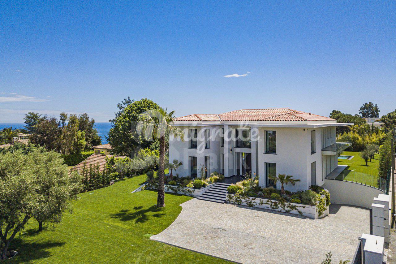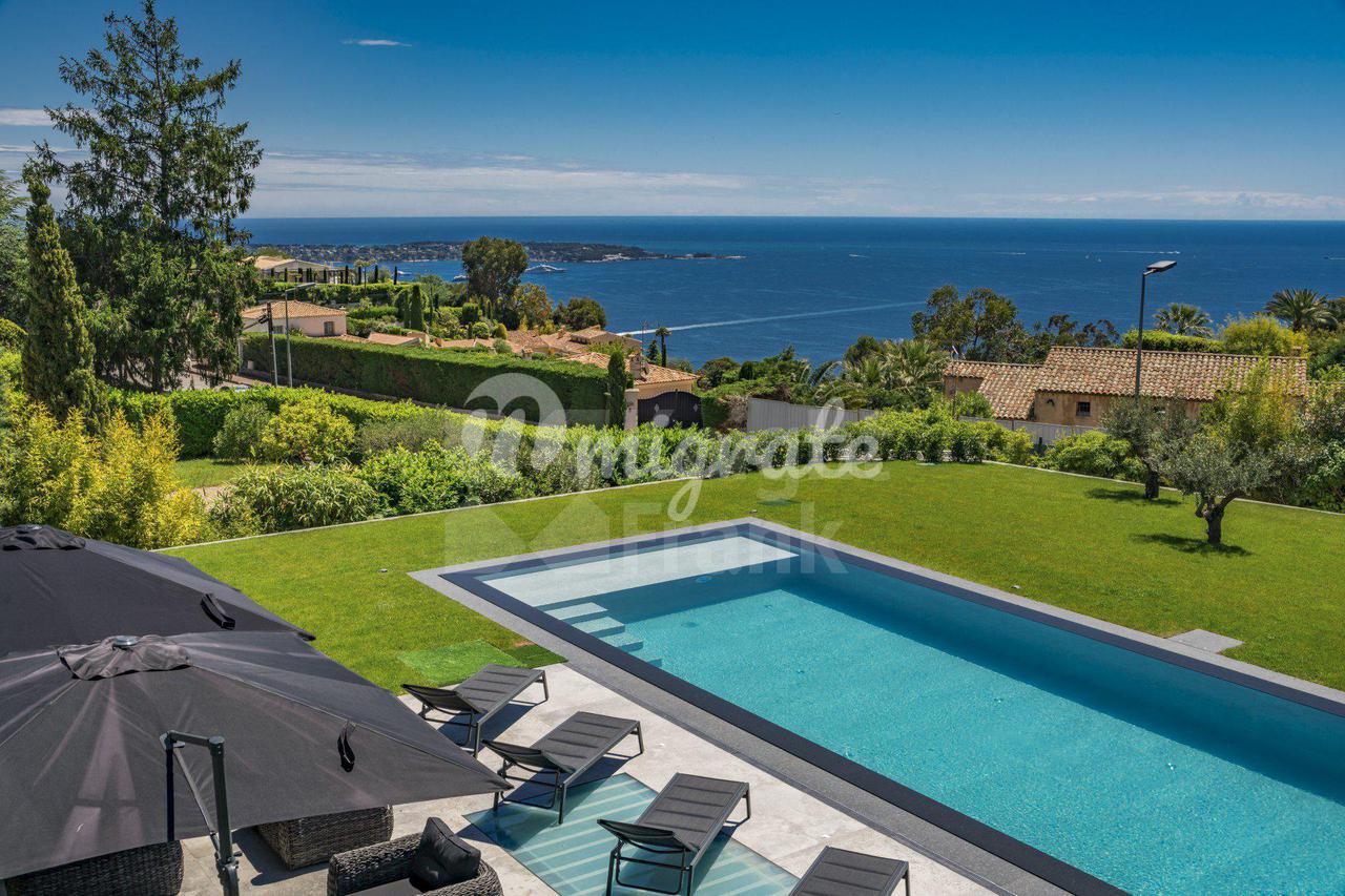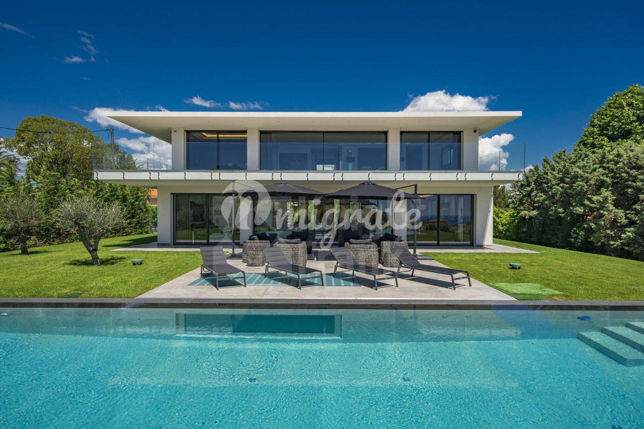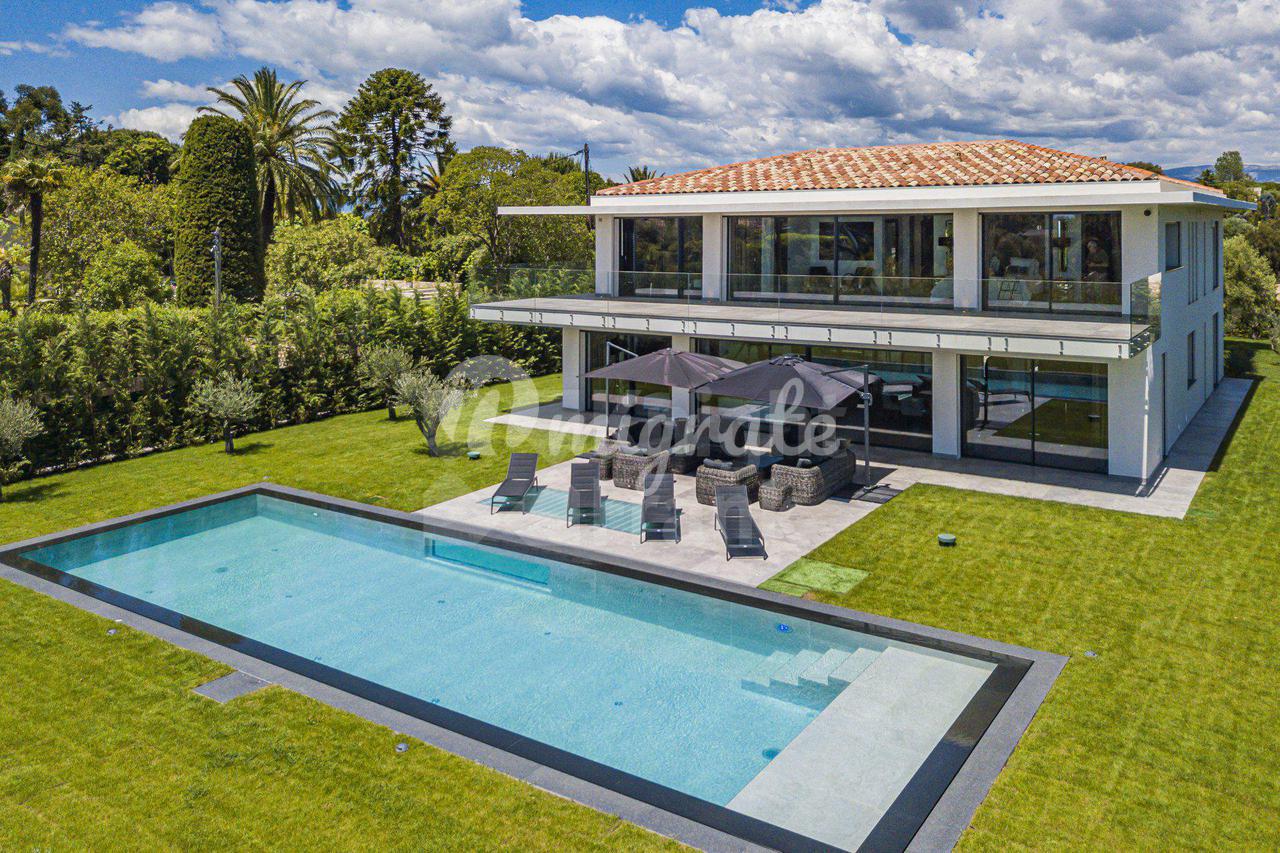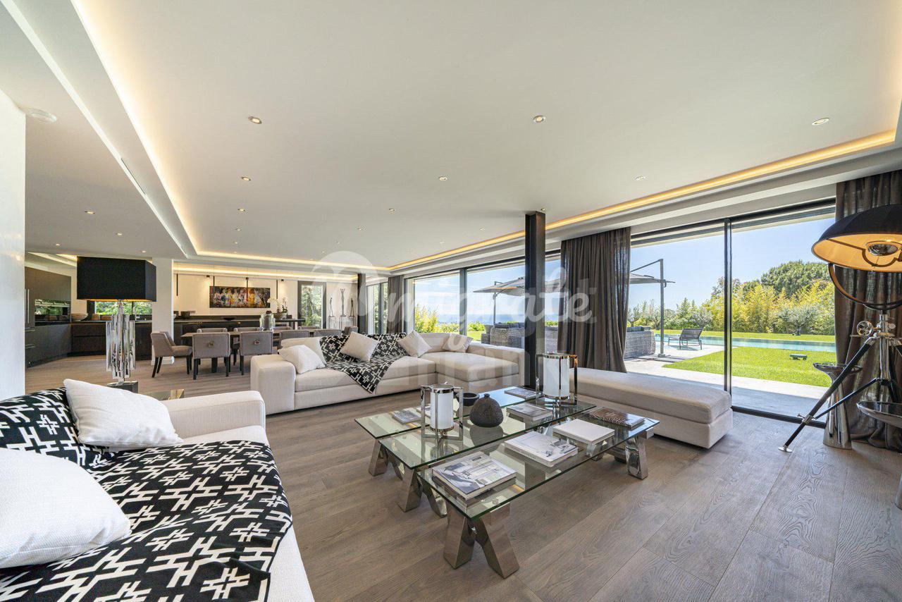 Роскошная современная вилла расположена в престижном районе в Каннах, на ландшафтном участке площадью 2 400 кв. м с бассейном и панорамными видами на море. Вилла включает прихожую, просторную гостиную с выходом в сад к бассейну, столовую, полностью оснащенную кухню, 5 спален с ванными комнатами и гардеробными, крытый бассейн, домашний кинотеатр, винный погреб и гараж на 2 автомобиля. Техническое оснащение включает уличное освещение, сигнализацию, автоматические ворота.