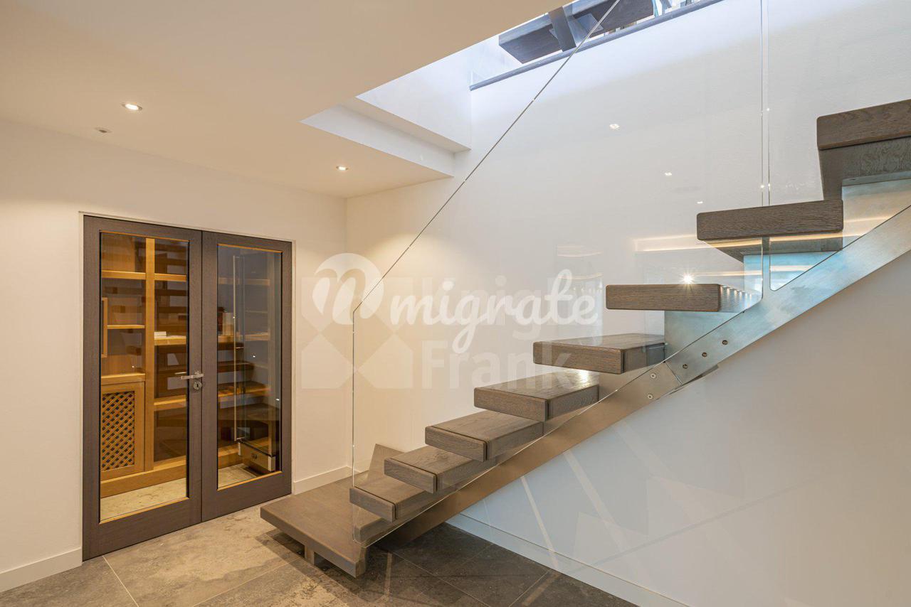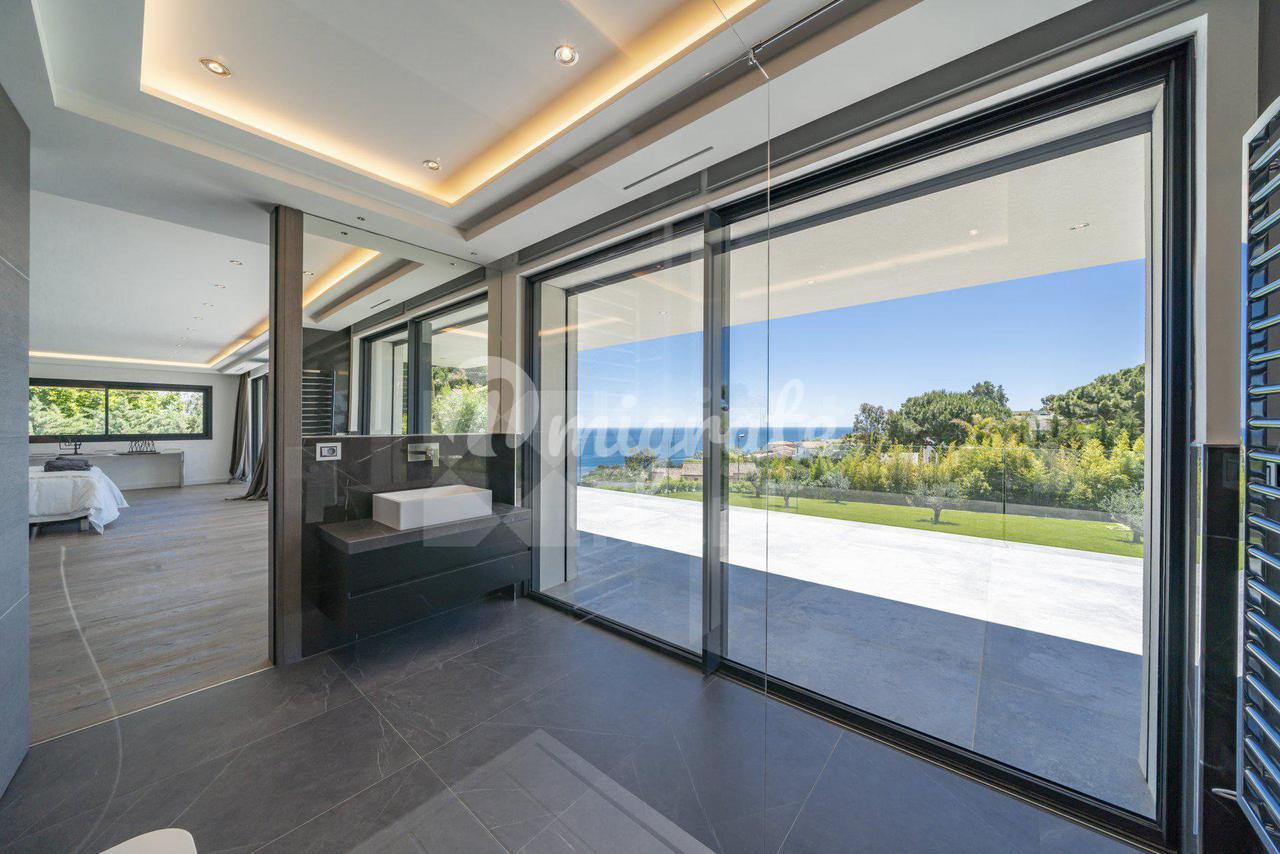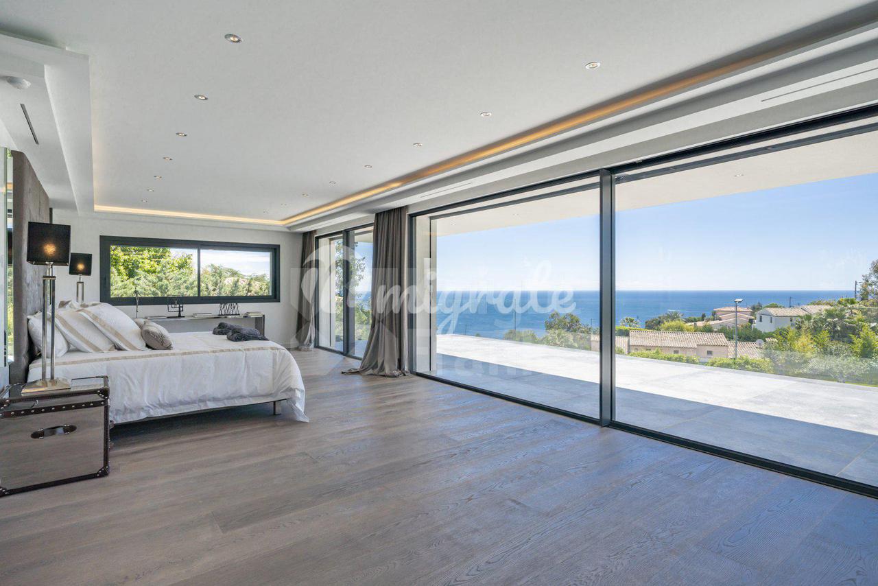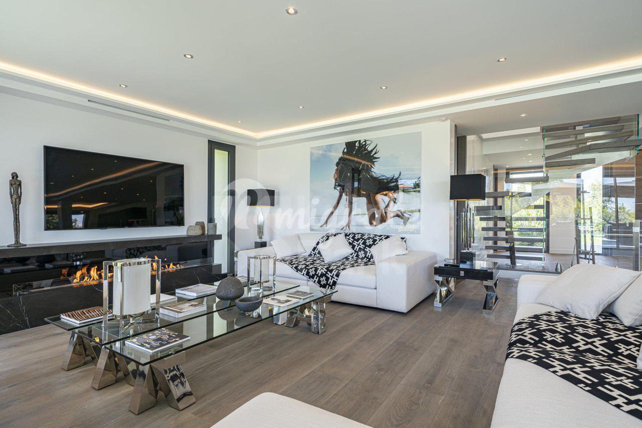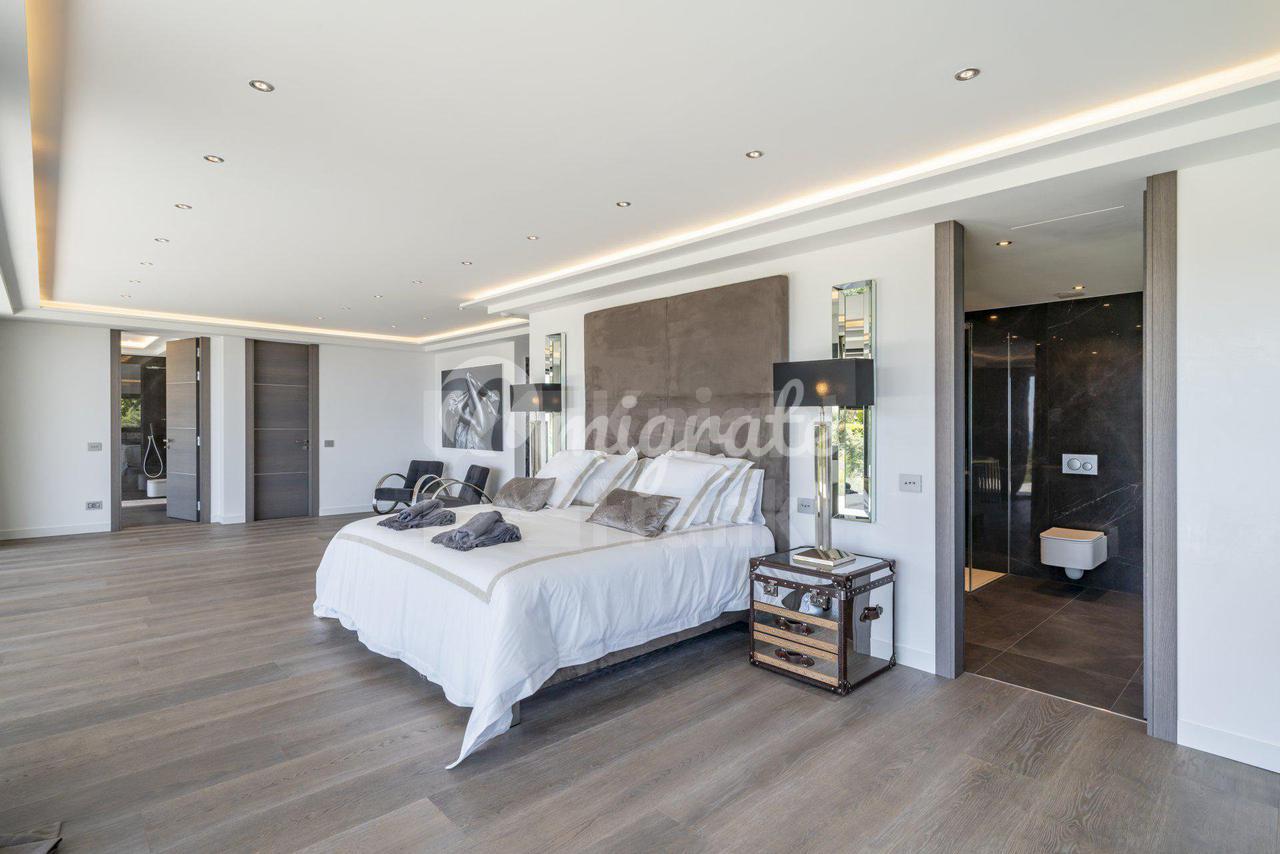 Роскошная современная вилла расположена в престижном районе в Каннах, на ландшафтном участке площадью 2 400 кв. м с бассейном и панорамными видами на море. Вилла включает прихожую, просторную гостиную с выходом в сад к бассейну, столовую, полностью оснащенную кухню, 5 спален с ванными комнатами и гардеробными, крытый бассейн, домашний кинотеатр, винный погреб и гараж на 2 автомобиля. Техническое оснащение включает уличное освещение, сигнализацию, автоматические ворота.