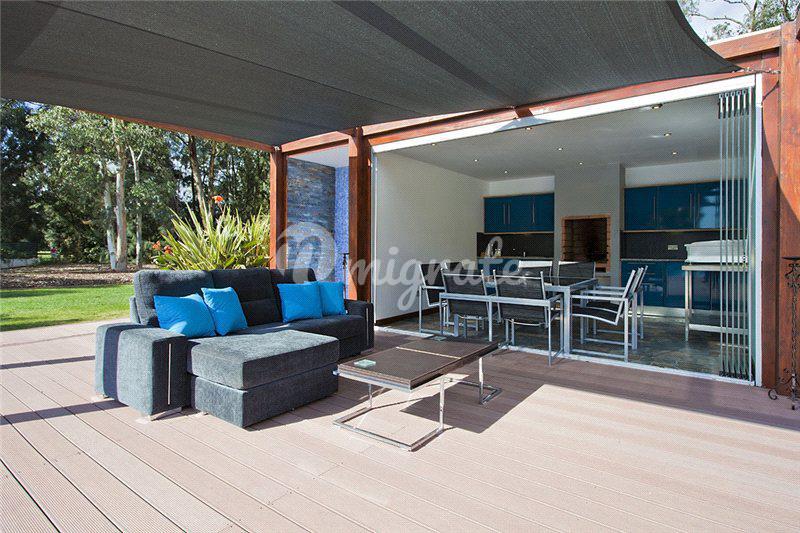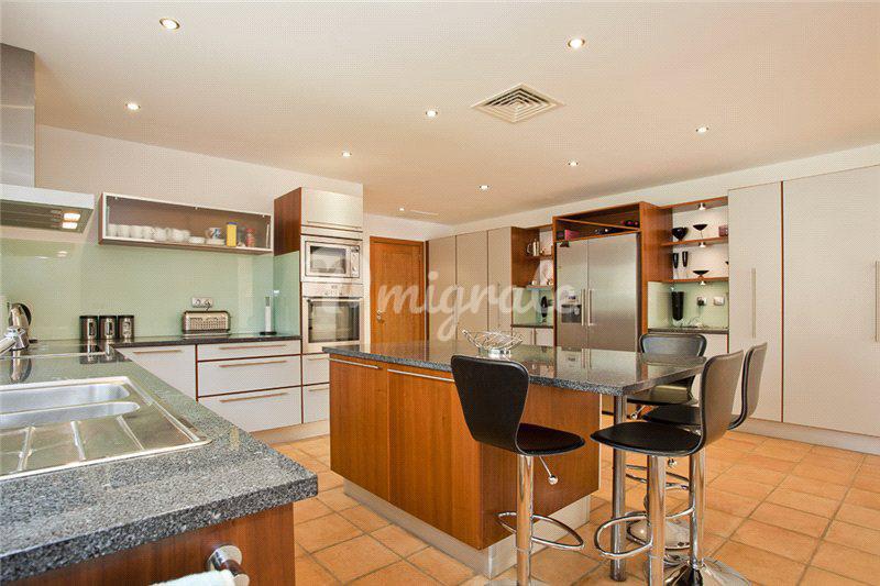 Современная вилла расположена в Алгарве, рядом с гольф-клубом. Вилла включает 5 спальных комнат, 2 гостиные, кладовую и кухню. На вилле имеется бассейн, гараж и разбит сад.
