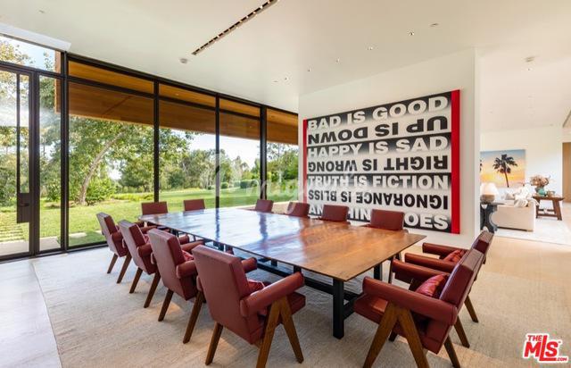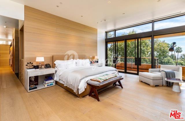 Одно из лучших поместий в Лос-Анджелесе расположено на 3,25 пышных акрах в Беверли-Хиллз. Поместье было построено в 2016 году, спроектировано и реализовано всемирно известными архитекторами Richard Meier & Partners, с использованием белого дуба, камня и стеклянных стен, визуально увеличивающих пространство. На вилле есть 2 лестницы и лифт, которые соединяют три уровня.