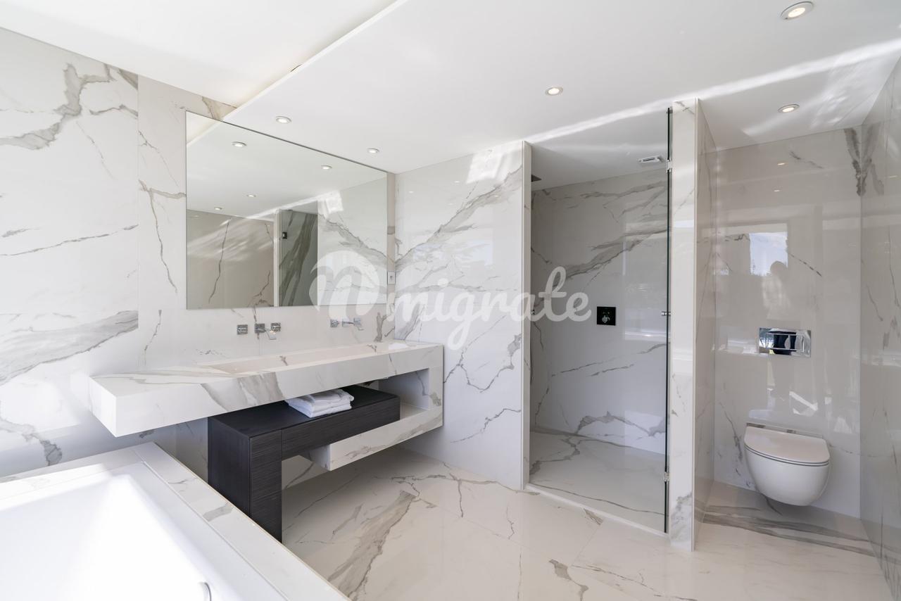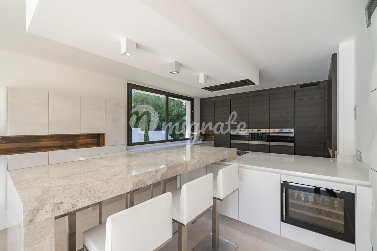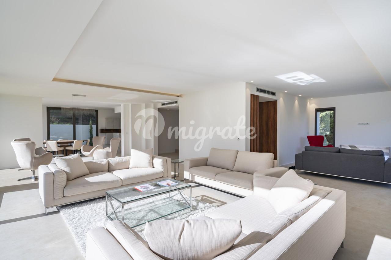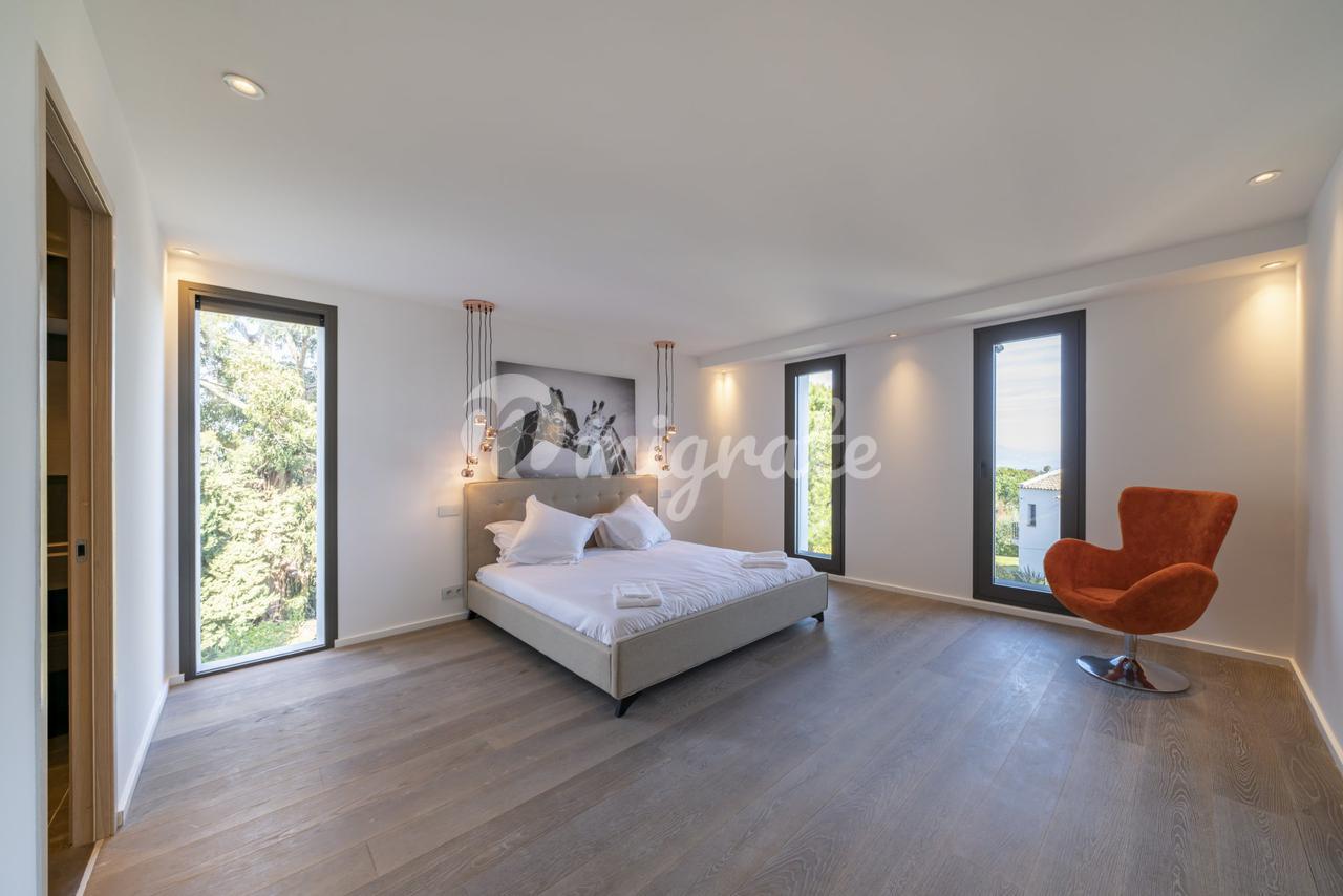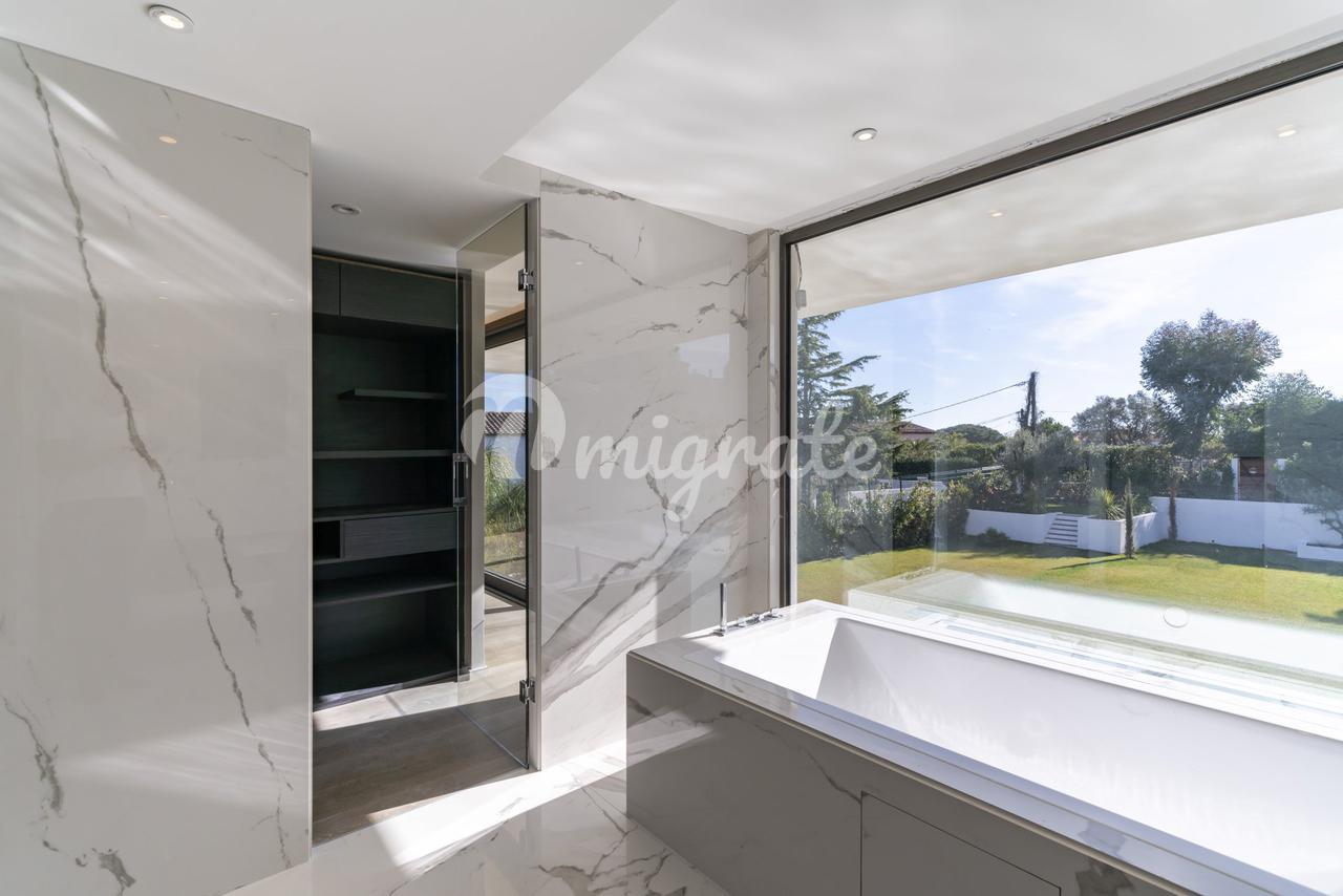 Новая современная вилла расположена в закрытом охраняемом жилом поселке в районе Супер-Канны, который является самой высокой точкой Канн. На ландшафтном участке площадью 1 594 кв. м расположен бассейн. Вилла включает 4 спальни с ванными комнатами и гардеробными, игровую, спортзал, гараж на 3 автомобиля.