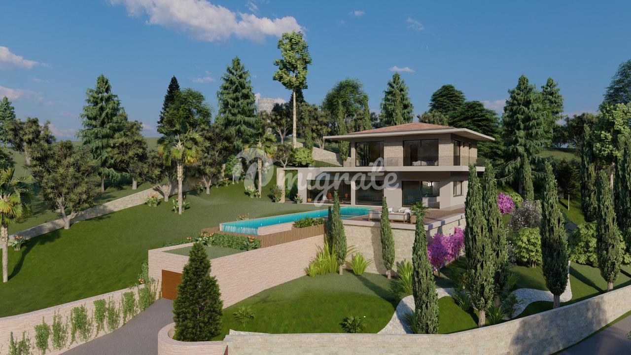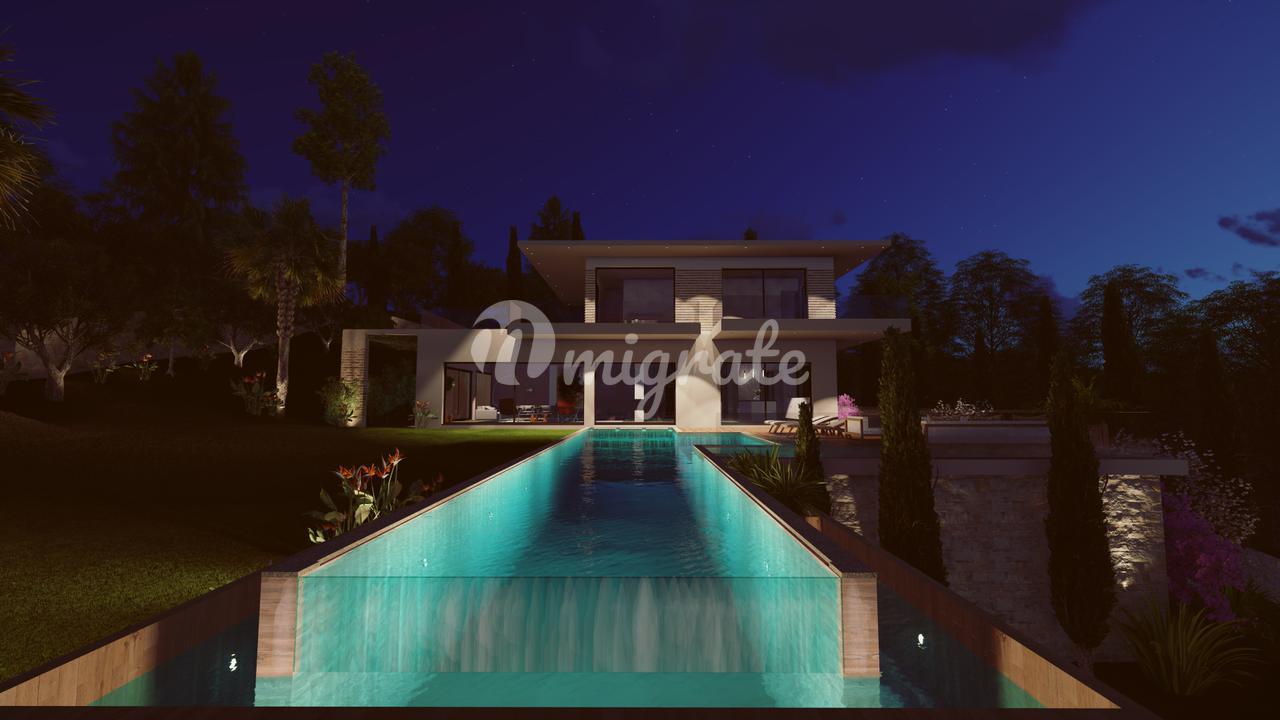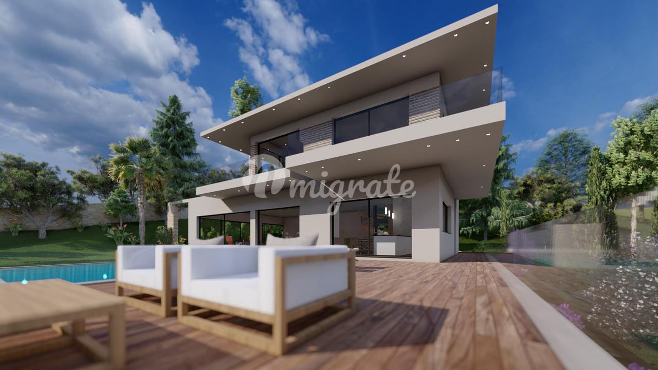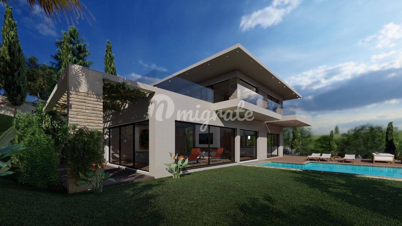 Расположенная на холмах Канн в одном из самых престижных районов города вилла окружена ландшафтным садом площадью 1 850 м² с исключительным видом на залив Кап д'Антиб и Альпы. Вилла предлагает 4 спальни с ванными комнатами и гардеробными, главную спальню с выходом на большую террасу с прекрасным видом на море, просторную гостиную, столовую, кухню, тренажерный зал, хаммам, домашний кинотеатр, винный погреб, прачечную, гараж на 6 машин и бассейн. Установлен лифт, сигнализация, автоматические ворота.