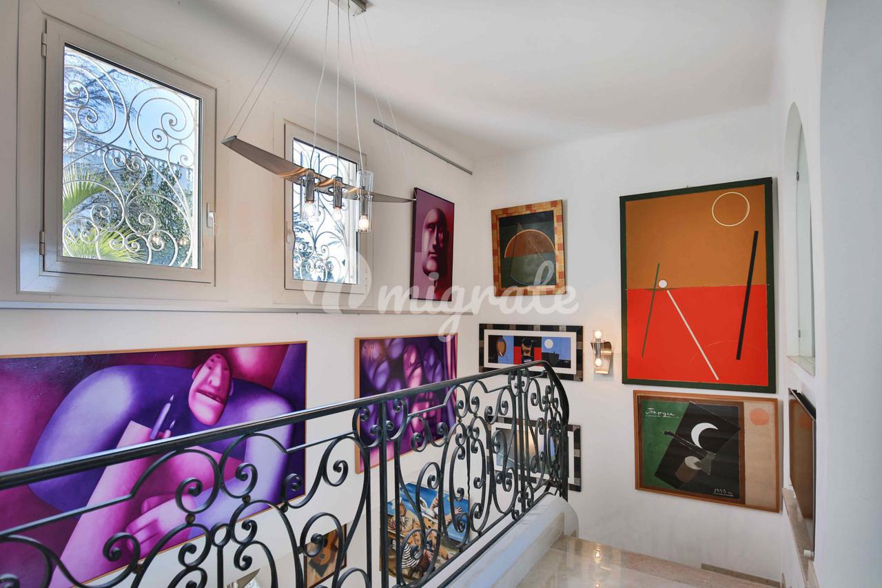 Современная вилла расположена в самом сердце Кап д’Антиба на Французской Ривьере. На первом этаже находится гостиная, кабинет, кухня, гостевой санузел, столовая и уличная обеденная зона. Второй этаж включает основную спальню с ванной комнатой и террасой с видом на море, 3 спальни с видами на море и 2 ванные комнаты.
