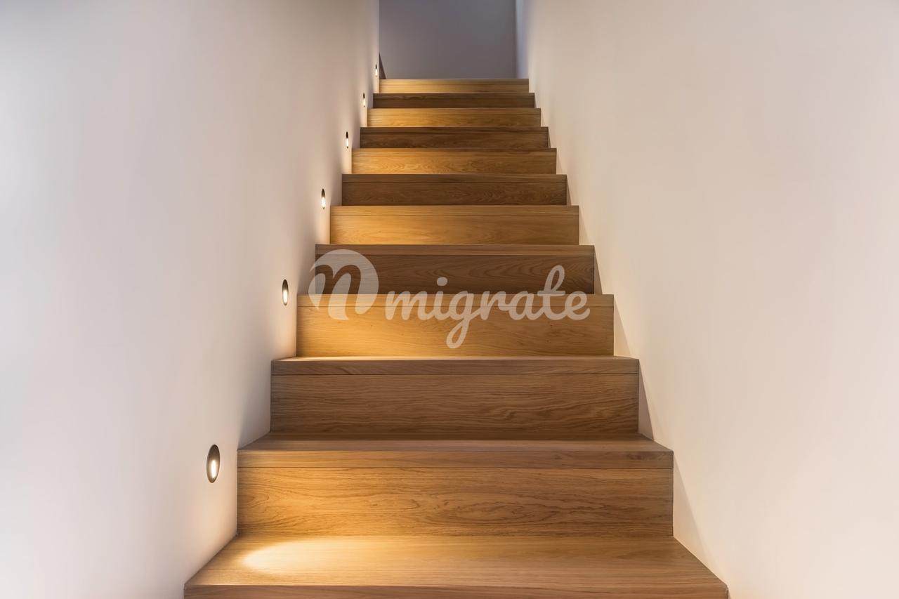В большой светлой гостиной есть камин и выход в приватный сад. Деревянная лестница, ведет на второй этаж, где расположены четыре. Главная спальня имеет просторную гардеробную, ванную комнатой с окном и выход на собственную террасу с панорамными видами.