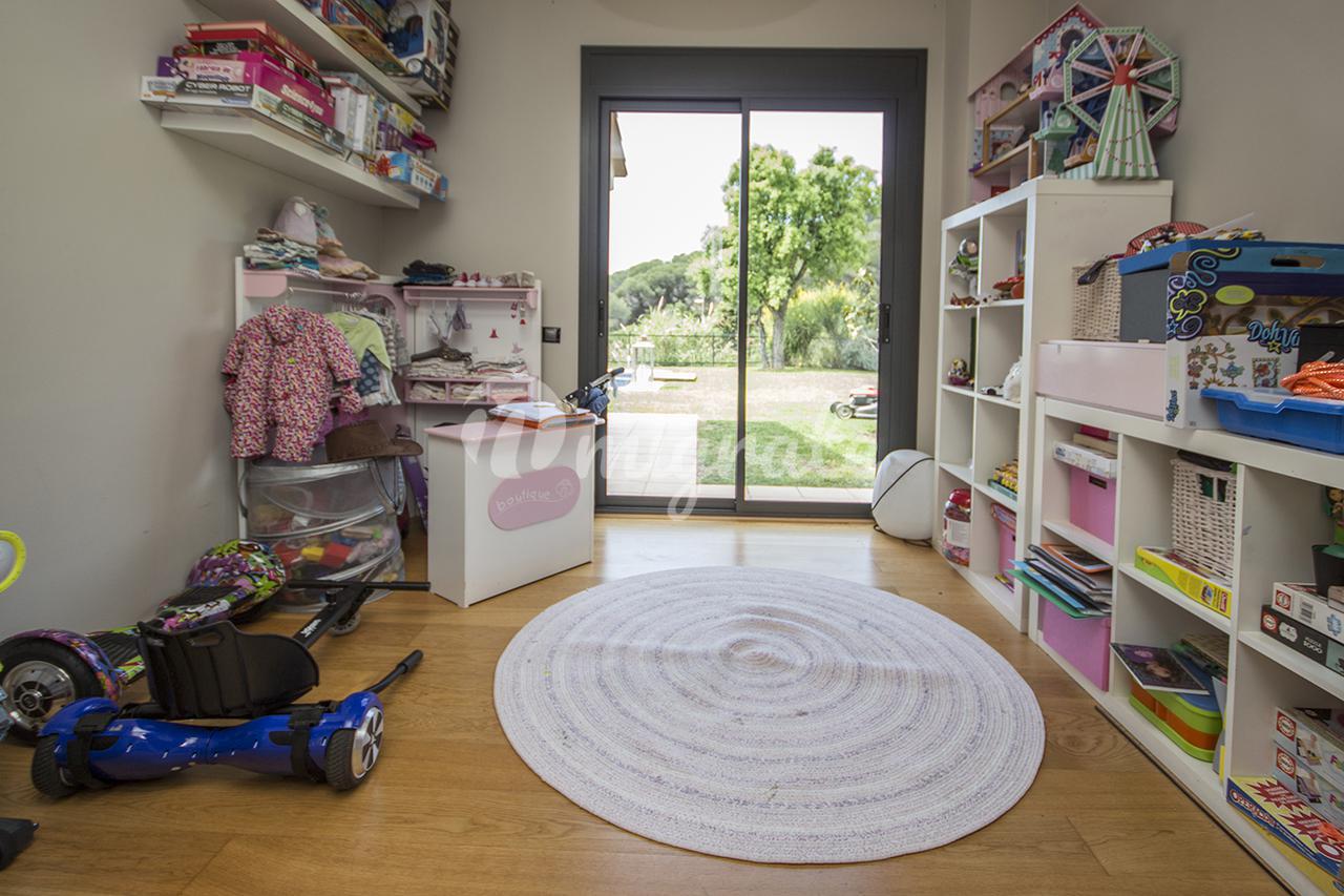 Двухэтажный современный дом в средиземноморском стиле с видом на море и горы в окружении большого количества зелени расположен в частном, эксклюзивном и закрытом жилом комплексе с консьержем в Сан-Висенс-де-Монтальт. На первом этаже находится просторная прихожая, гостевой санузел, гостиная с камином и большими раздвижными окнами с выходом на террасу, просторная кухня, прачечная и спальня для персонала с ванной комнатой. На этом же этаже расположены три большие спальни и полностью оборудованная ванная комната.
