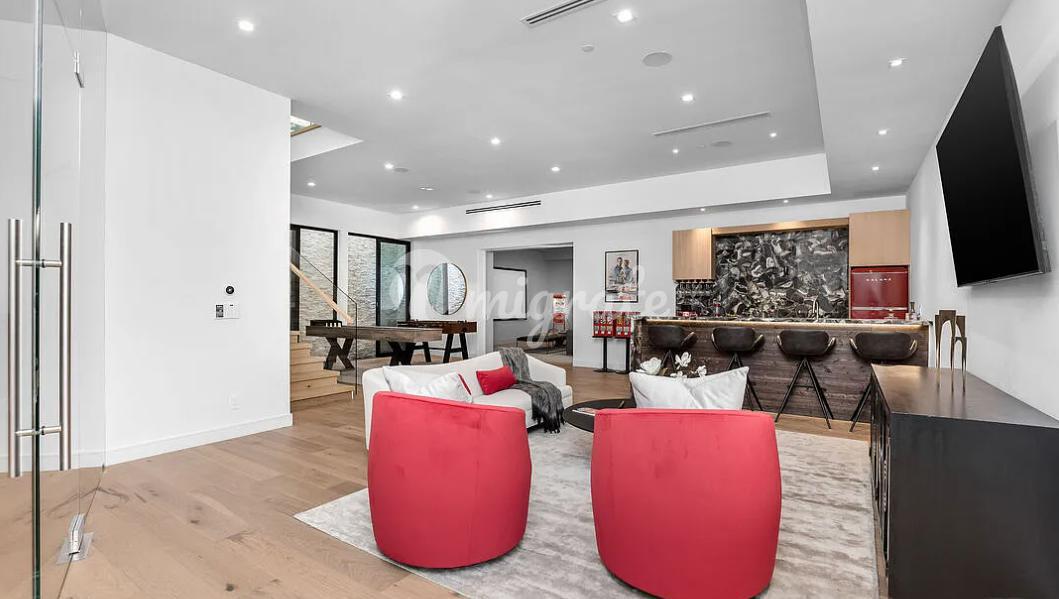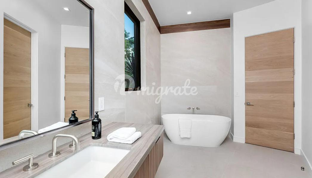 В апартаментах имеются двойные шкафы с итальянской отделкой Tesoro Collection Tuscan Moon, внутренние и внешние приватные зоны отдыха, вид на океан с бризом и глэм-рум! Цитрусовые деревья и травяной сад. Главный этаж воплощает красоту и здоровье. Во всем доме использованы специально отобранные дизайнером камни. На главном этаже есть две спальни с ванными комнатами, а также домашний офис. В доме есть лифт. Осветительные приборы были тщательно подобраны командой дизайнеров Hampton-Gulrajani, а индивидуальный дизайн дома был разработан удостоенным наград Шоном Петерсоном из Ames-Peterson International.