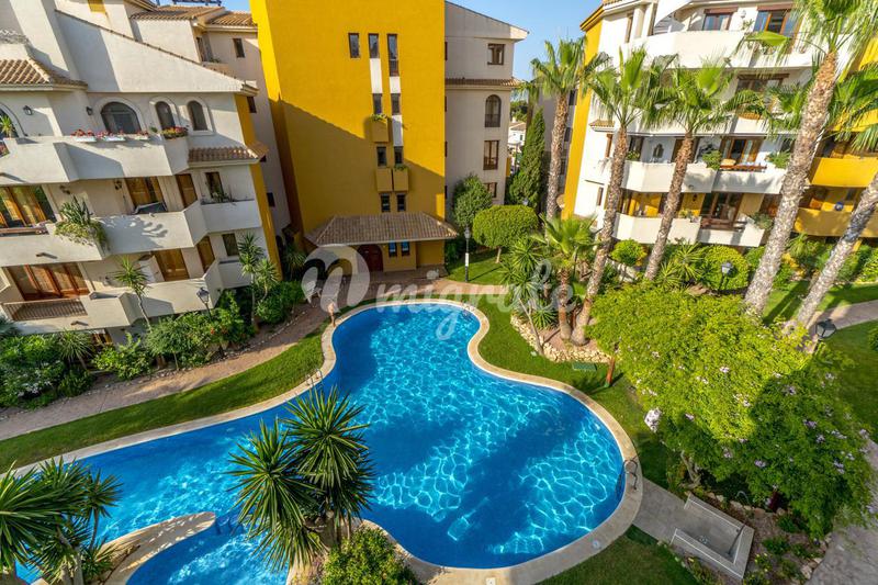 Прекрасно расположенная квартира с одной спальней, ориентация на западную сторону. Рядом со всеми удобствами. В пешей доступности гольф клуб La Quinta Golf. Гостиная, укомплектованная кухня, спальня с