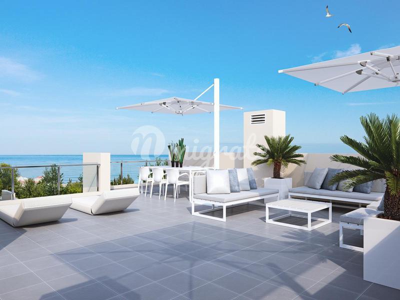 Апартаменты на первой линии в Торре-де-ла-Орадада. Салон, кухня, 1 спальня, 1 ванная комната, терраса 5 м2, солярий. Общая площадь 53 м2. В комплексе есть сад, бассейн для взрослых и детей, детская иг