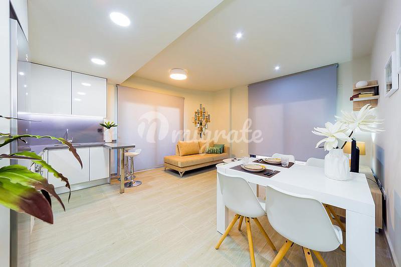 Квартира на нижнем этаже в Торревьехе. Салон, американская кухня, 1 спальня со встроенным шкафом, Ванная комната. Общая площадь 53 м2. Общий бассейн. Развитая инфраструктура и обилие мест для самого р