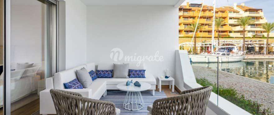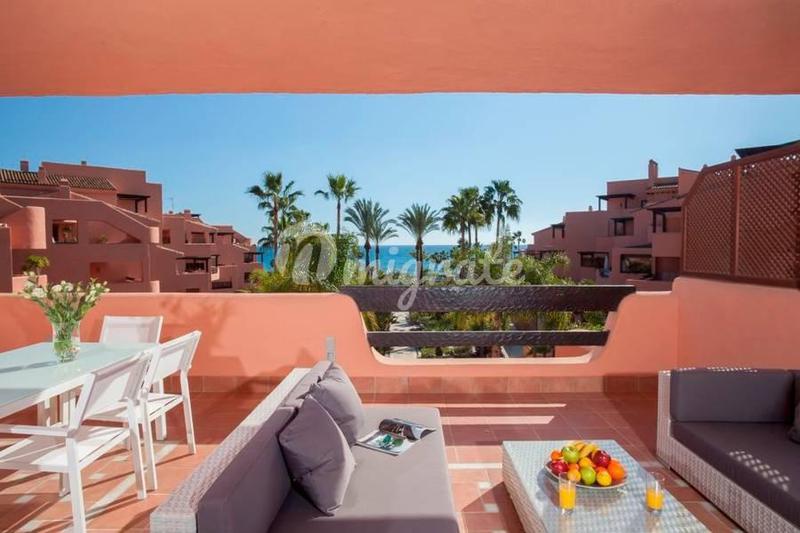 Апартаменты на первой линии пляжа, расположенные в районе Кабопино, Марбелья. С терасы открывается потрясающий вид на море и береговую линию. В пешей доступности порт Кабопино, рядом со всей инфрастру