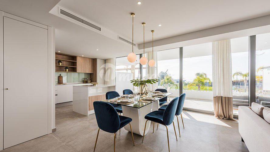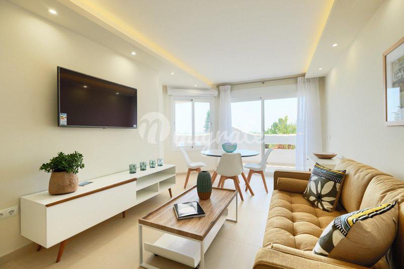 Полностью перепроектированные и обновленные апартаменты в комплексе Costalita, на Новой Золотой Миле. В апартаментах уютная гостиная / столовая с открытой полностью оборудованной итальянской дизайнерс