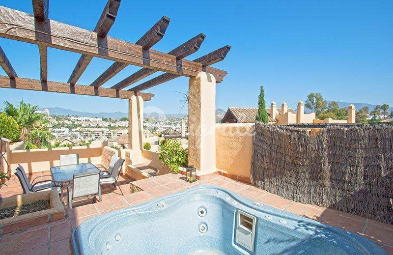 Пентхаус дуплекс расположился в районе Новая Андалусия, в нескольких минутах ходьбы от Пуэрто Банус. Обновленные апартаменты с южной ориентацией, с видом на горы. Первый этаж располагает просторной го