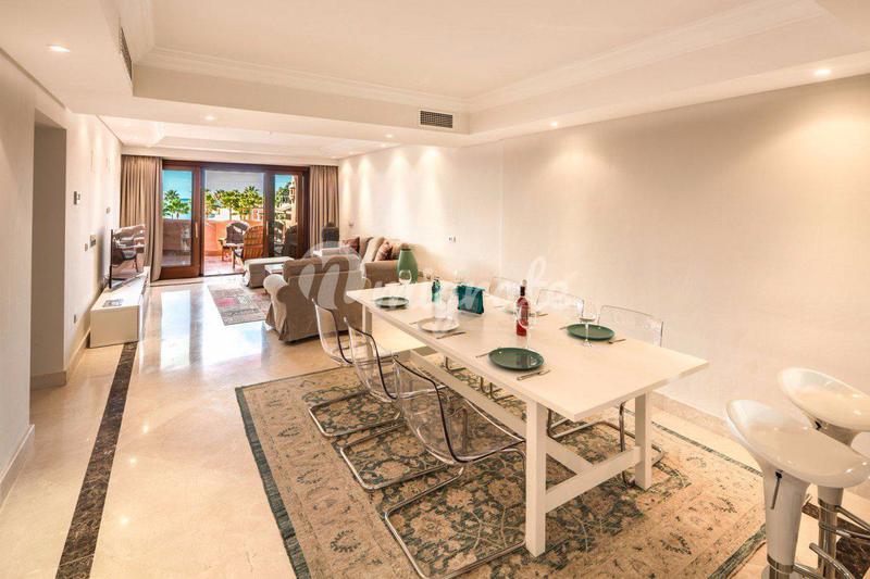 Просторные 3х-спальные апартаменты, расположенные на первом этаже закрытого охраняемого комплекса, в Бенахавис. Апартаменты располагают большой гостиной и столовой, полностью оборудованной кухней с пр