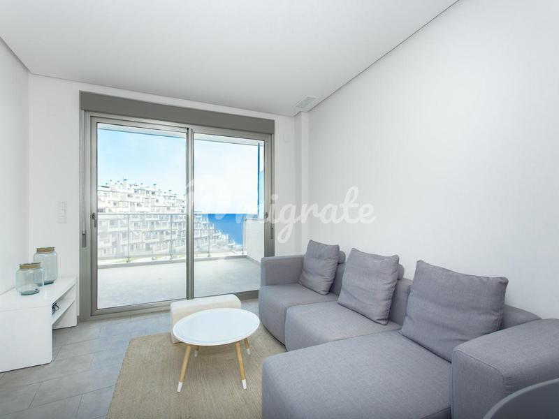 Апартаменты на нижнем этаже в Лос-Ареналес-дель-Соль, Эльче. Салон, отдельная кухня, 4 спальни, 3 ванные комнаты, терраса с видом на море. Общая площадь 111 м2. В комплексе есть подземный паркинг, сад