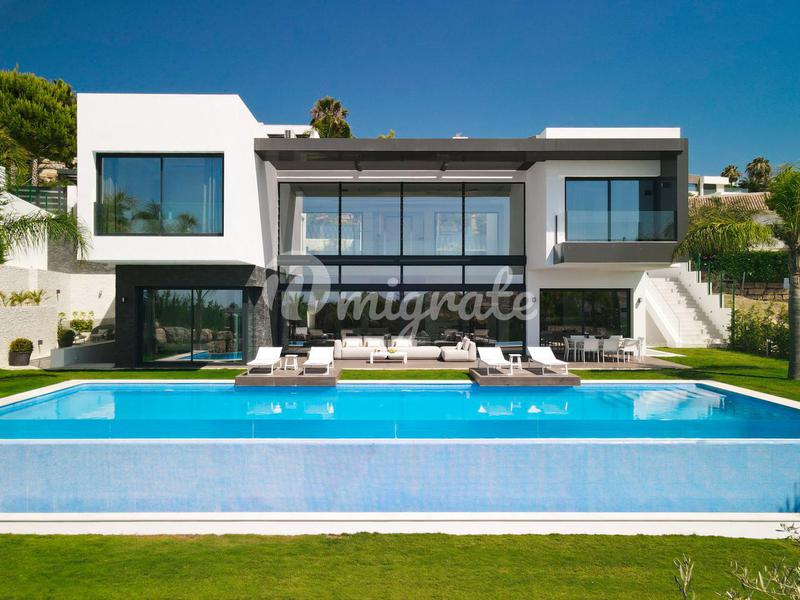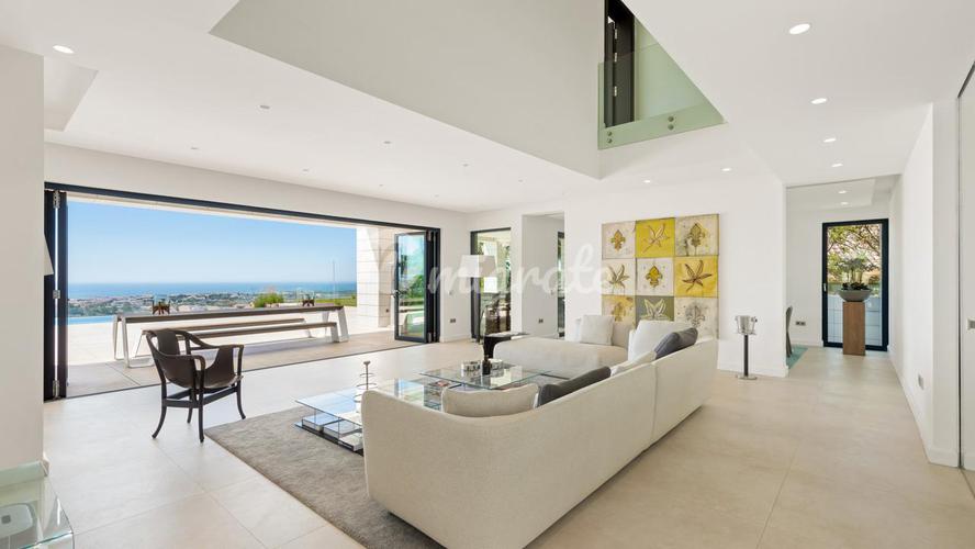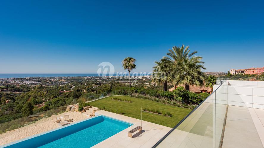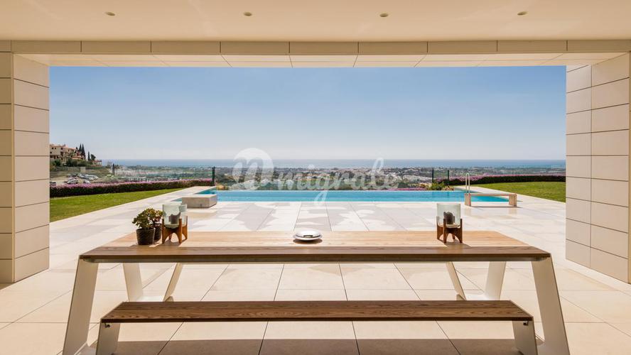 Продается великолепная современная вилла с великолепным панорамным видом на море, африканское побережье и Гибралтар. Вилла окружена очаровательным садом и имеет пейзажный бассейн. Впечатляющая дорожка