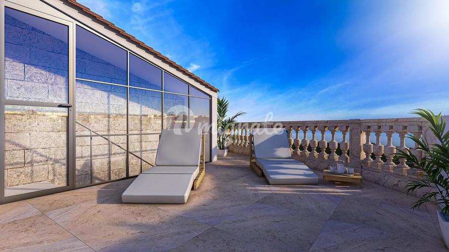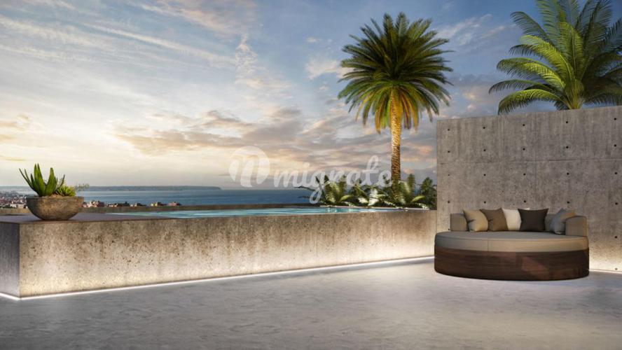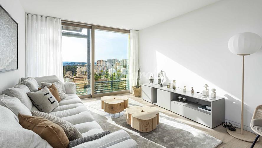 Ориентация на солнце: Юг Этот новый комплекс расположен в нескольких минутах ходьбы от Старого города Пальмы и моря. Двухуровневые пентхаусы имеют просторные гостиные-столовые зоны и потолки двойной в