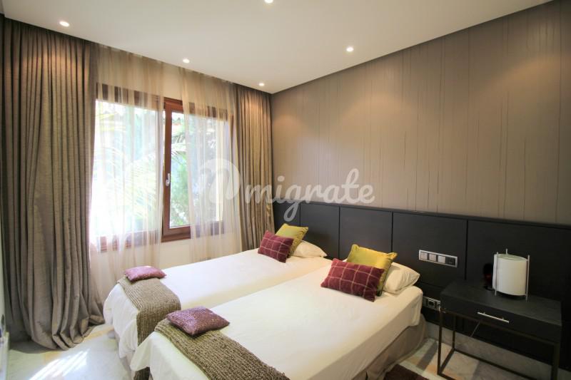 Элегантные апартаменты расположены в комплексе Золотая Миля в одном из самых престижных районов Марбельи. Полностью меблированные апартаменты находятся на первом этаже и включают три спальни с отдельн
