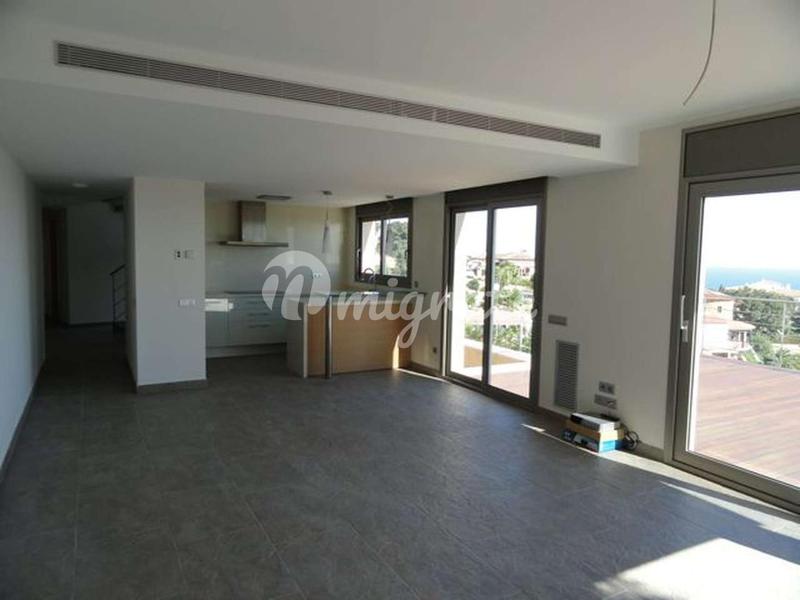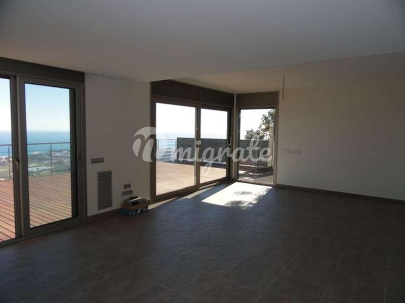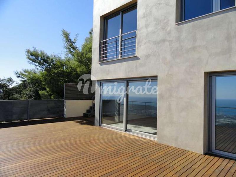 Современный трехэтажный дом с видом на море и горы расположен в Кабрильс. На первом этаже находится просторная прихожая, гостиная с библиотекой, камином и выходом на большую террасу с захватывающим ви