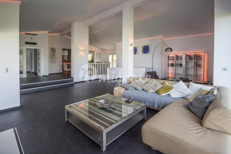 Двухэтажный современный дом в средиземноморском стиле с видом на море и горы в окружении большого количества зелени расположен в частном, эксклюзивном и закрытом жилом комплексе с консьержем в Сан-Вис