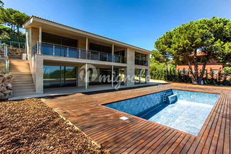 Новый дом с видом на море в урбанизации Санта Элена города Кабрера де Мар на побережье Коста Марезме. Общая площадь 454 м.кв. на территории 2 300 м.кв. Построен в 2 этажа по 200 метров каждый. В доме