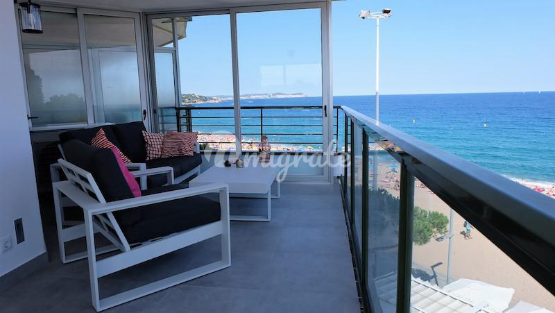 Пентхаус с частным бассейном расположен на первой линии моря в городе Плайя-де-Аро на побережье Коста-Бравы, на закрытой территории современного комплекса с садами, бассейном, консьержем и прямым выхо
