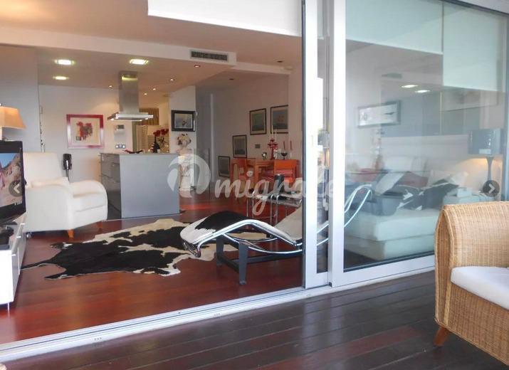 Двухуровневый пентхаус площадью 120 кв. м расположен в жилом комплексе на побережье Коста-Брава в городе Плайя-де-Аро, в 100 км от Барселоны. Комплекс стоит на первой линии, в 200 м от моря; из апарта