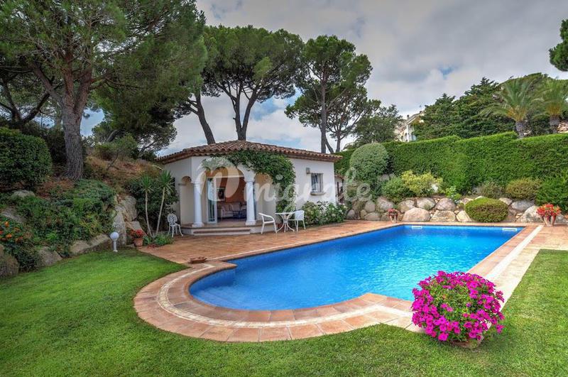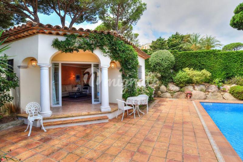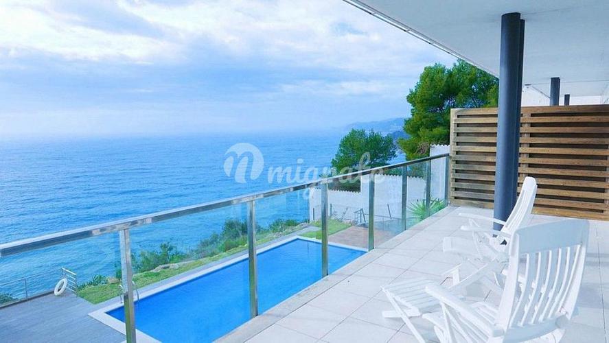 Вилла с видом на море находится на побережье Коста-Брава, в престижной урбанизации недалеко от города Сан-Фелиу-де-Гишольс. Двухэтажная вилла расположена на большом участке с ландшафтным садом и бассе